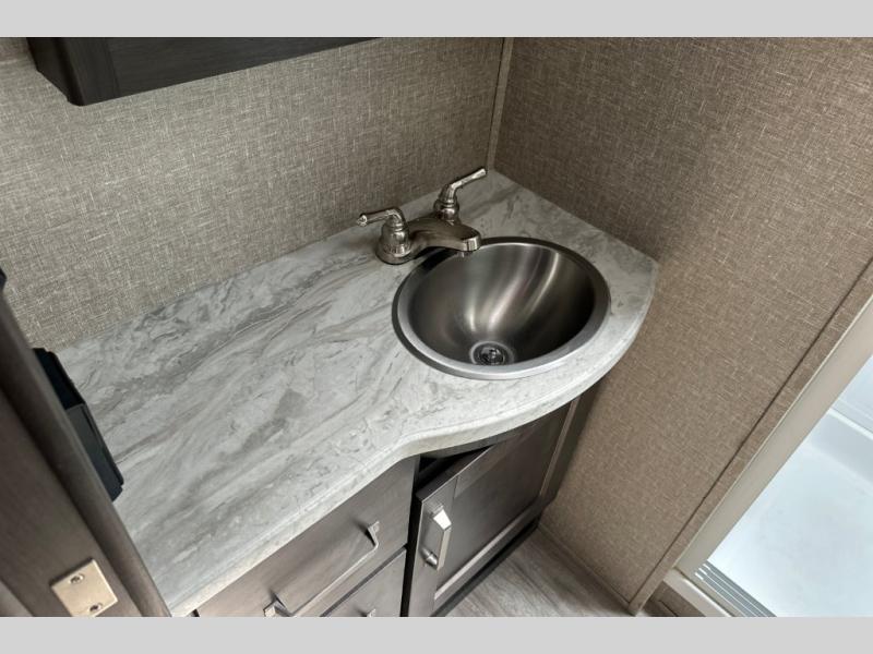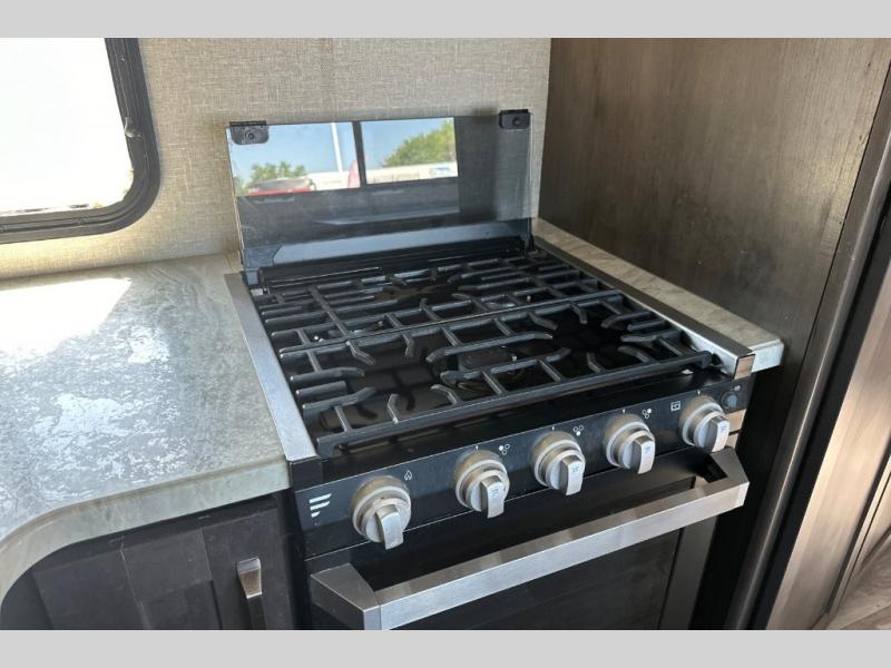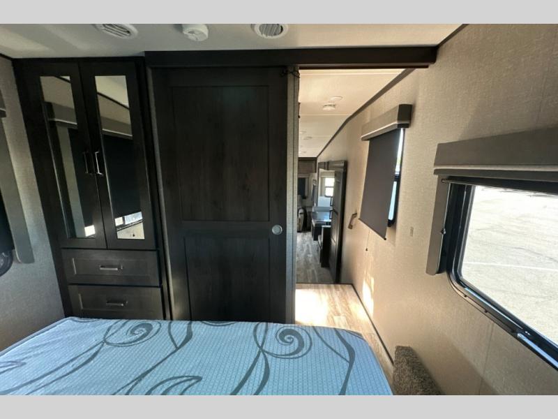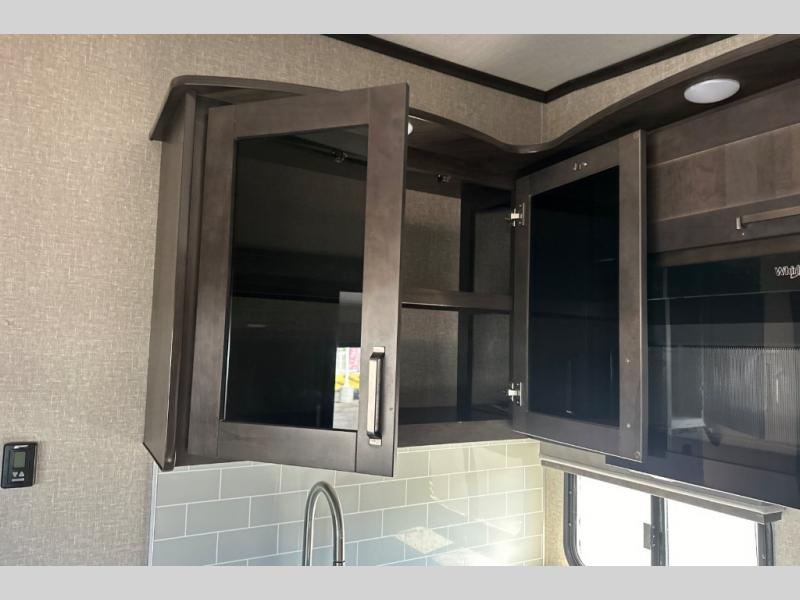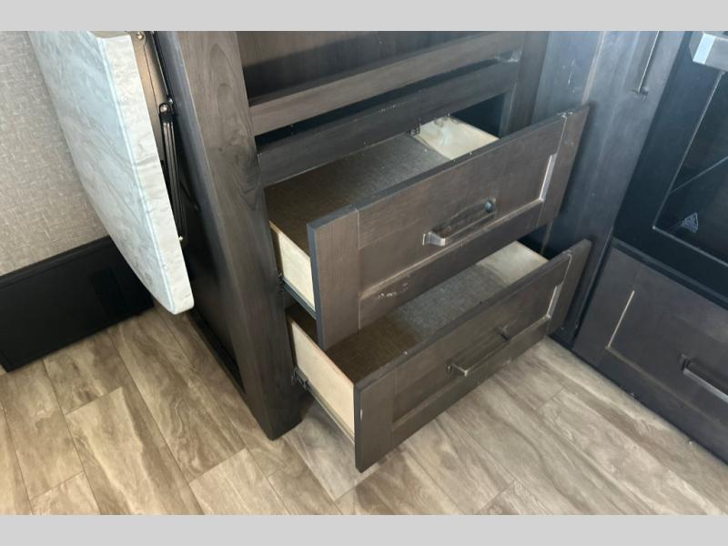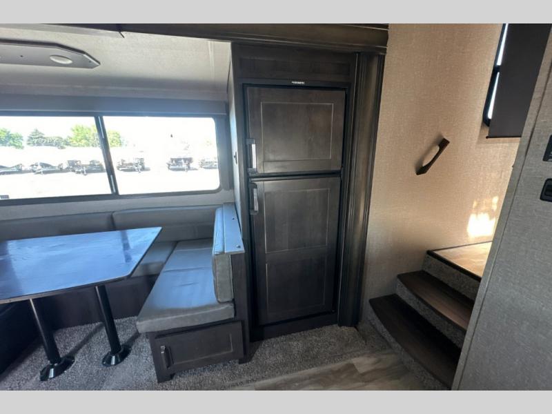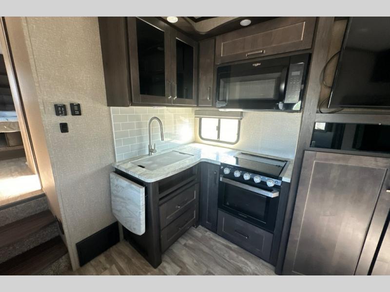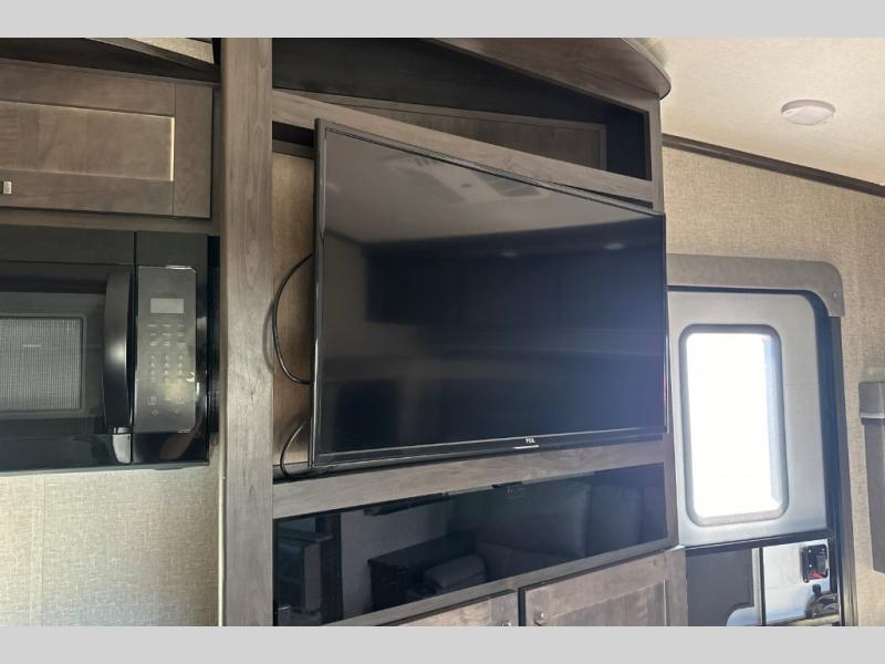 As you use the massage feature on the theatre seats with LED lights, you can also watch the HD LED TV, and visit with the cook in the L-shaped kitchen with counter extension for more space to dry the dishes. The 80" U-shaped dinette offers a great place to dine and play games when someone hasn't folded it down to sleep on at night. The walk-in shower allows you to be refreshed and ready for whatever comes next, be it a walk around the campsite, shopping in town, or falling asleep. And you will be able to enjoy the comforts of your own private bedroom with a queen bed and lots of storage.