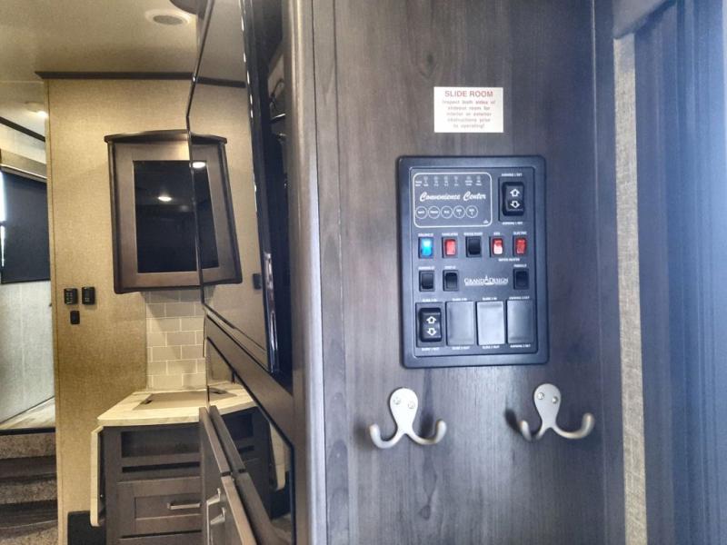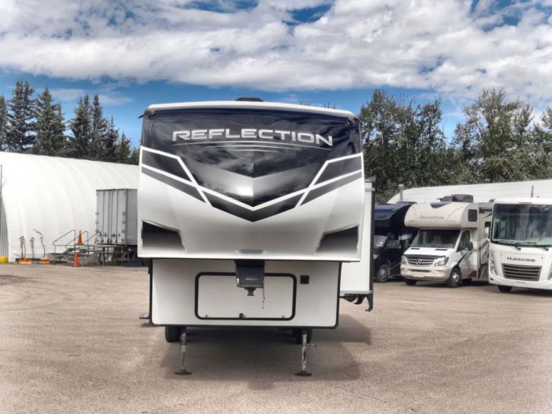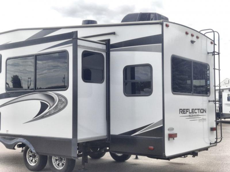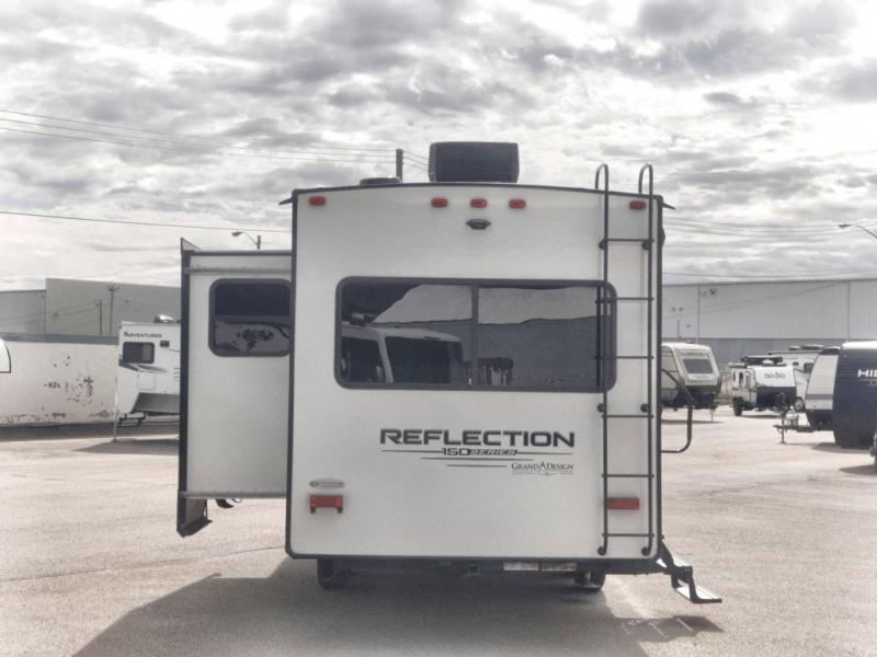 Each Reflection 150 Series fifth wheel by Grand Design allows you to use your half-ton and short bed truck to tow thanks to the 90 degree turning radius swivel pin box. The Universal All-In-One docking station, the LP Quick Connect, and the One-Touch automatic leveling system will make setting up and packing up easy for those weekenders or full-timers that like to move around to see the countryside. Inside you will love the Gunstock fixtures and hardware, the louvered tread steps to the bedroom, the large panoramic windows, plus the many features in the mandatory packages. It's time to reflect on your wise choice, choose a Reflection 150 Series today!