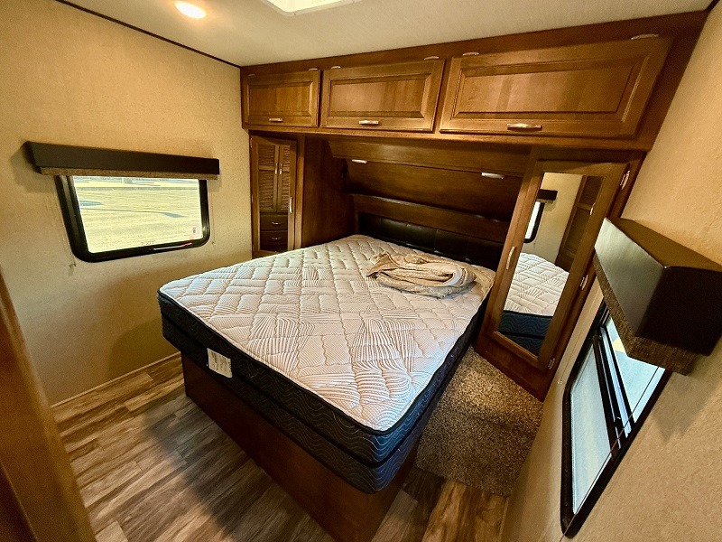 Each Reflection fifth wheel by Grand Design offers luxury along with easy towing to your favorite destinations with the aerodynamic front cap including Max Turn Radius. The Universal All-In-One docking station, LP Quick Connect, and One-Touch electric awning with LED lighting makes setting up and packing up easy for those weekenders or full-timers that like to move around. Inside, you will find the bedroom is complete with a residential queen mattress, a king size wardrobe, oversized underbed storage, and much more! The Arctic 4-Seasons Protection package allows you to camp anywhere and anytime of the year with its heated and enclosed underbelly, EZ winterization, dual attic vents, plus so much more. Come choose your favorite model today!