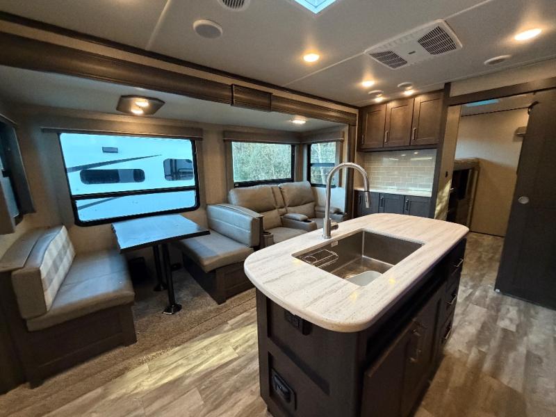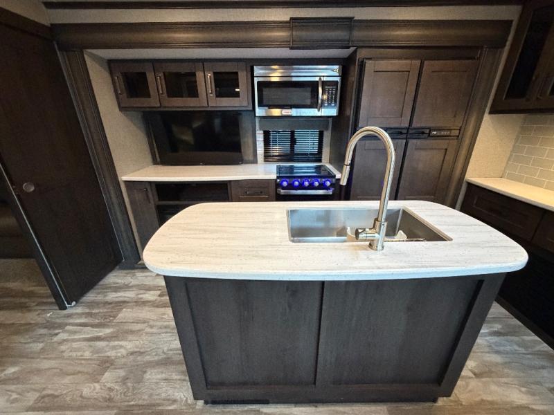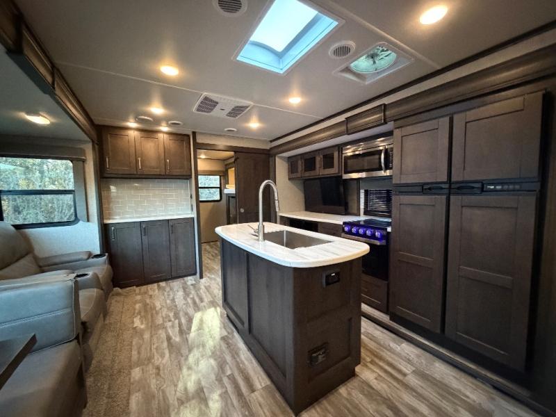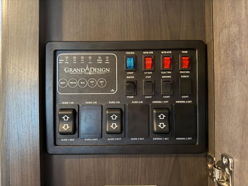Each Reflection fifth wheel by Grand Design offers luxury along with easy towing to your favorite destinations with the aerodynamic front cap including Max Turn Radius. The Universal All-In-One docking station, LP Quick Connect, and One-Touch electric awning with LED lighting makes setting up and packing up easy for those weekenders or full-timers that like to move around. Inside, you will find the bedroom is complete with a residential queen mattress, a king size wardrobe, oversized underbed storage, and much more! The Arctic 4-Seasons Protection package allows you to camp anywhere and anytime of the year with its heated and enclosed underbelly, EZ winterization, dual attic vents, plus so much more. Come choose your favorite model today!
