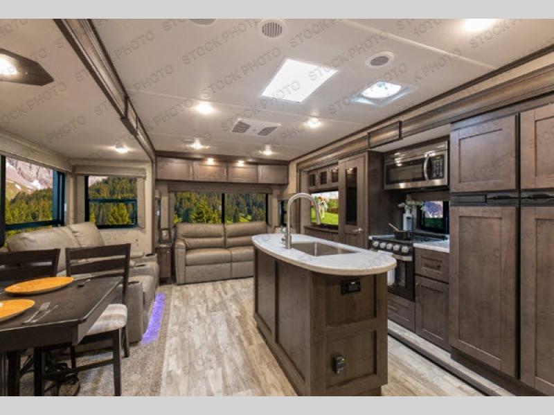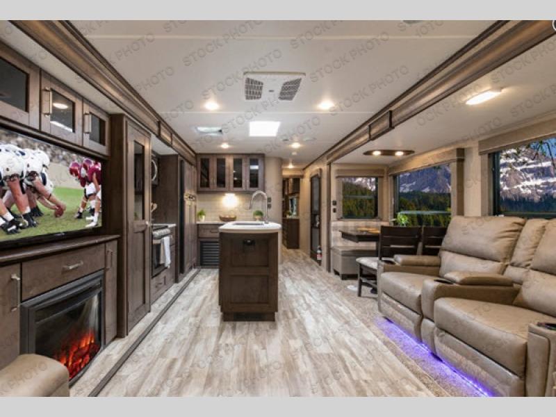 If you are a couple that enjoys traveling in luxury with your own accommodations, then you will be excited each time you get this Reflection travel trailer out of storage. You can even invite over a few overnight guests. Just imagine sitting in the rear living area on the furniture provided while visiting with the cook preparing meals at the kitchen island or washing dishes in the large sink. You might even glance over at the 40" TV and fireplace every once in a while. You will find storage everywhere you look including outside in the unobstructed pass-through compartment. This model has many more standard features to enjoy and options to choose from to make this your perfect full-time or weekend retreat on wheels.