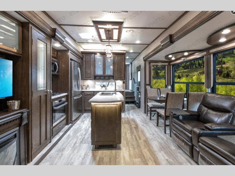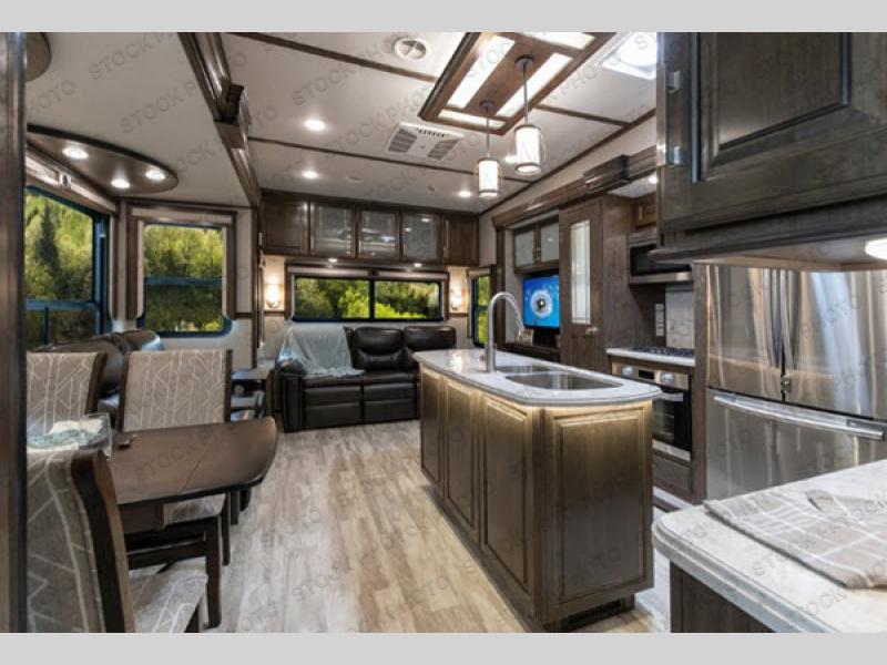 With each Solitude fifth wheel by Grand Design, you will receive refined residential finishes and affordable luxury for your extended stays or weekend getaways. From the solid foundation that rests upon an exclusive superchassis and the maximum insulation to the taller ceilings, taller and deeper cabinets, and the power reclining theatre seating with removable swivel tables and heat and massage, you will be impressed! The pet dish drawer, the Stealth AC system, and the Weather-Tek package that allows you to travel during any season will also give you many more reasons to love everything about your Solitude. It's time to redefine luxury living wherever you decide to land.