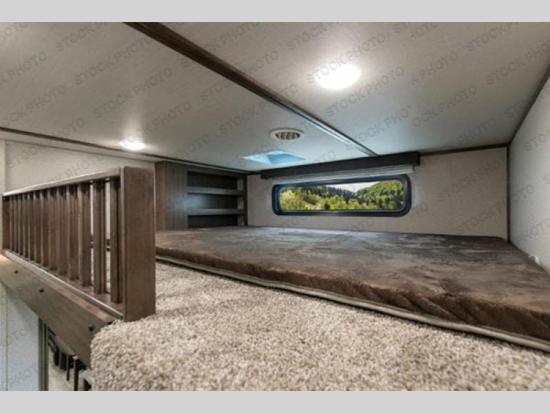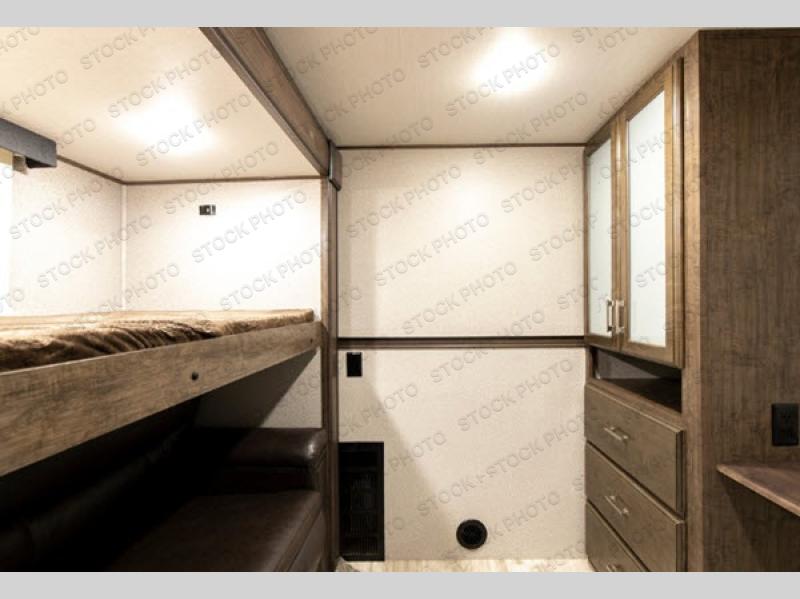 You could be working steps away from the best views of the mountains in this Solitude fifth wheel! Imagine having a bunkhouse that includes a sofa and a desk for your multi-purpose room. You will find a loft above for extra sleeping space or storage, a full bathroom, and a master bedroom with everything you need! The kitchen includes a professional-grade stainless steel cooktop, built-in oven, convection microwave, a stainless steel 18 cu. ft. four-door refrigerator, plus a large pantry. You will also love the center island and hutch for additional space for your things. You will certainly enjoy the fireplace, theatre seating, and any option you choose to make your life better on the open road!