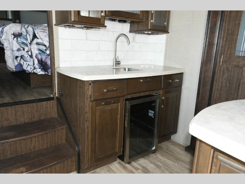 Luxury touches abound, from the hardwood cabinetry and solid surface countertops to the taller ceilings and deep storage cabinets that create an open, inviting atmosphere. With premium materials and handcrafted finishes, the Solitude 310GK feels every bit like a residential suite—just one that moves with you.