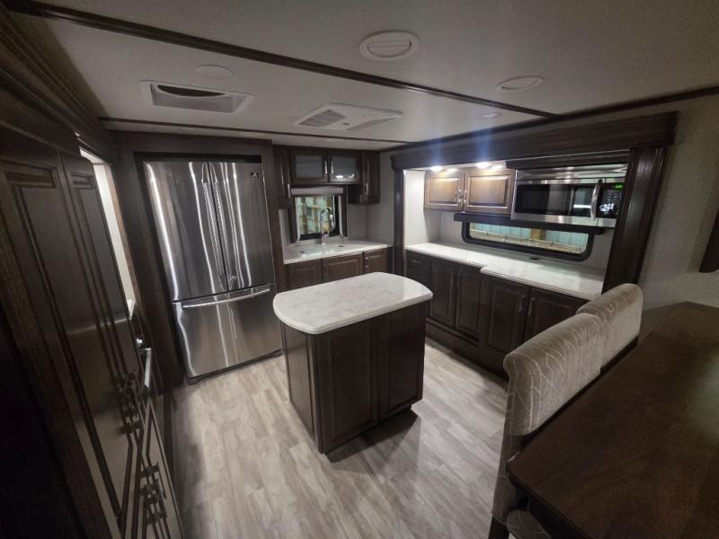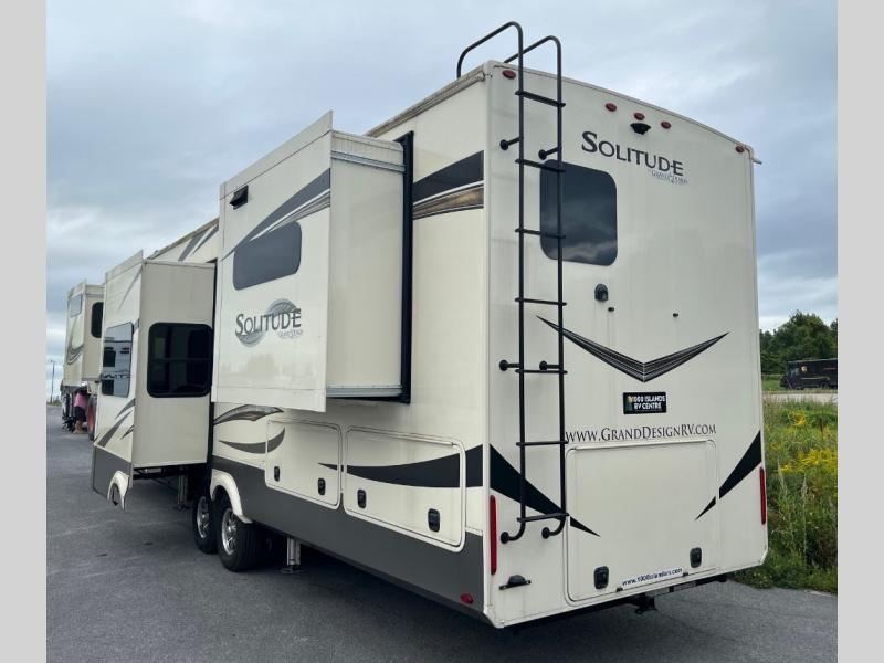 With each Solitude fifth wheel by Grand Design, you will receive refined residential finishes and affordable luxury for your extended stays or weekend getaways. From the solid foundation that rests upon an exclusive superchassis and the maximum insulation to the taller ceilings, taller and deeper cabinets, and the power reclining theatre seating with removable swivel tables and heat and massage, you will be impressed! The pet dish drawer, the Stealth AC system, and the Weather-Tek package that allows you to travel during any season will also give you many more reasons to love everything about your Solitude. It's time to redefine luxury living wherever you decide to land.