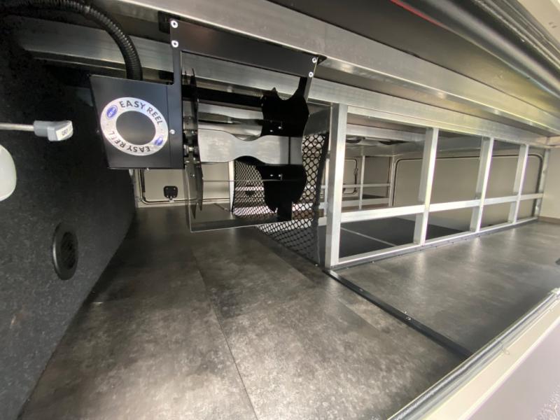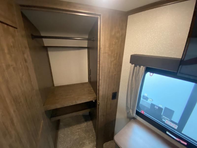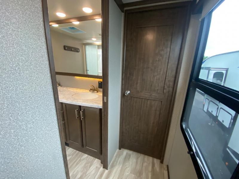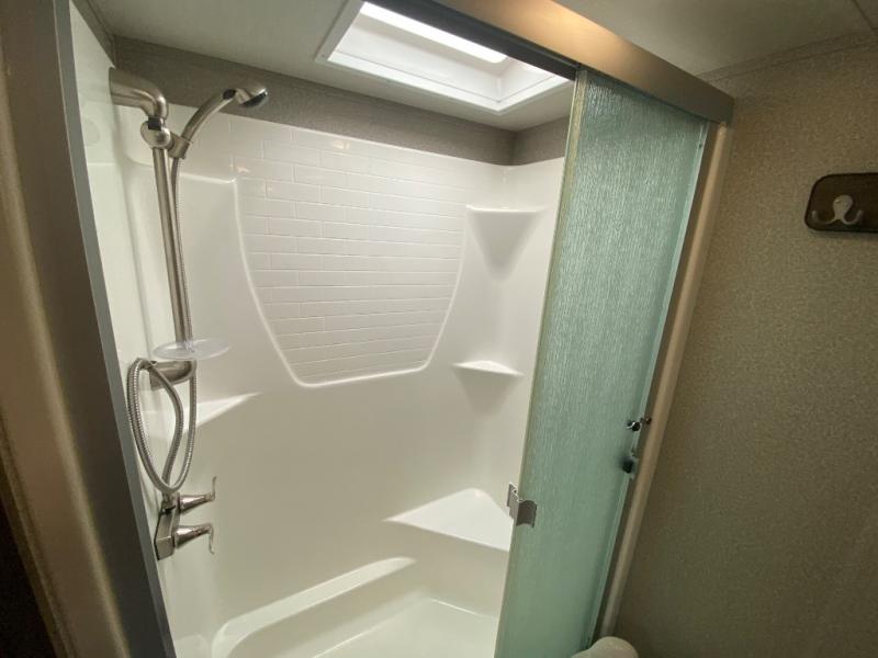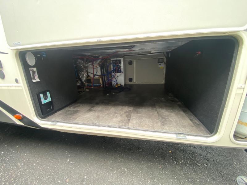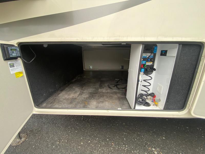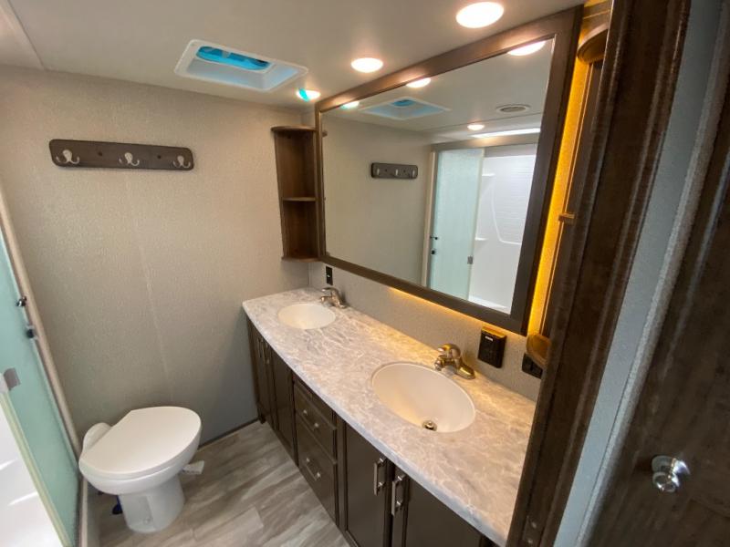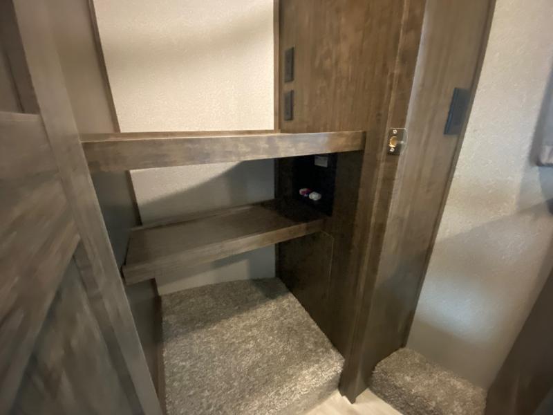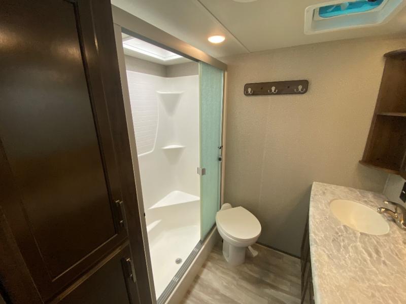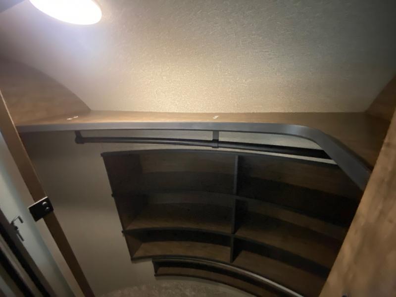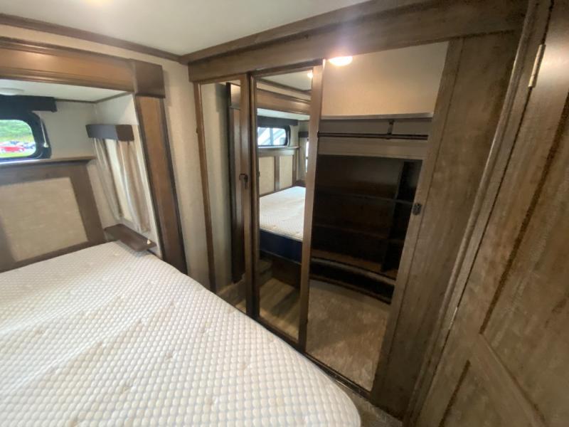 You will love your extended stays while traveling in this Solitude fifth wheel which features five slides! A rear raised kitchen provides the family chef a great space with opposing slides as well as an island for food prep. A raised bar top with two stools overlooks the center living space that also features dual opposing slides, two tri-fold sofas, and theatre seating. Dual sinks in the full bathroom means getting ready is easy for two, and the shower with skylight offers more head room that you are also sure to appreciate. As you wind down your day, the front master bedroom will be a welcomed retreat thanks to a queen bed slide, and the walk-in closet provides ample space for all of your things. For added storage, a large exterior sliding tray offers more room for luggage and larger items. There is also a mid-coach pass-through storage compartment for other camping gear.