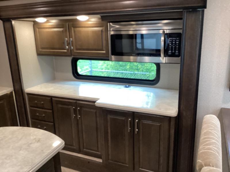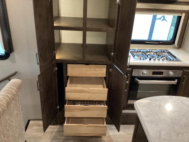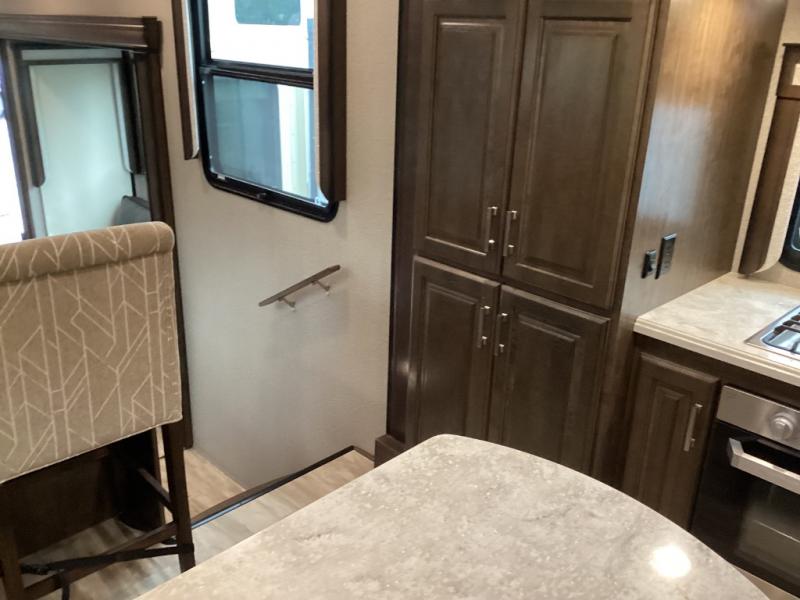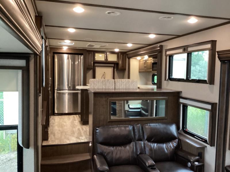 Step into upscale travel with the 2020 Solitude 390RK-R — a premium fifth-wheel built for adventurers who refuse to compromise. With five slide-outs, a rear kitchen layout, and full-feature amenities, this unit offers residential comfort and elegant styling wrapped in tow-ready form.