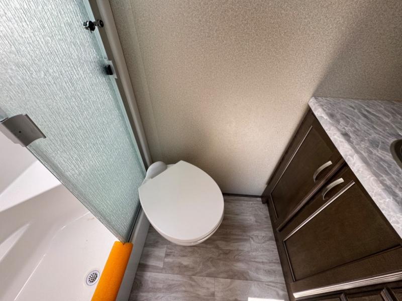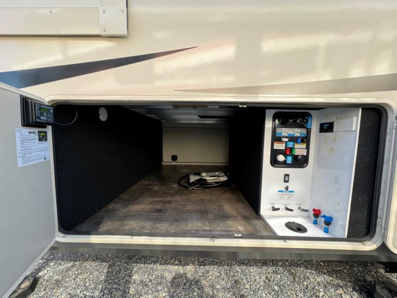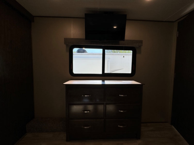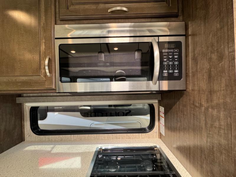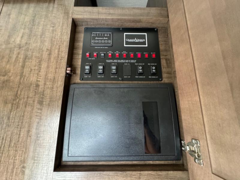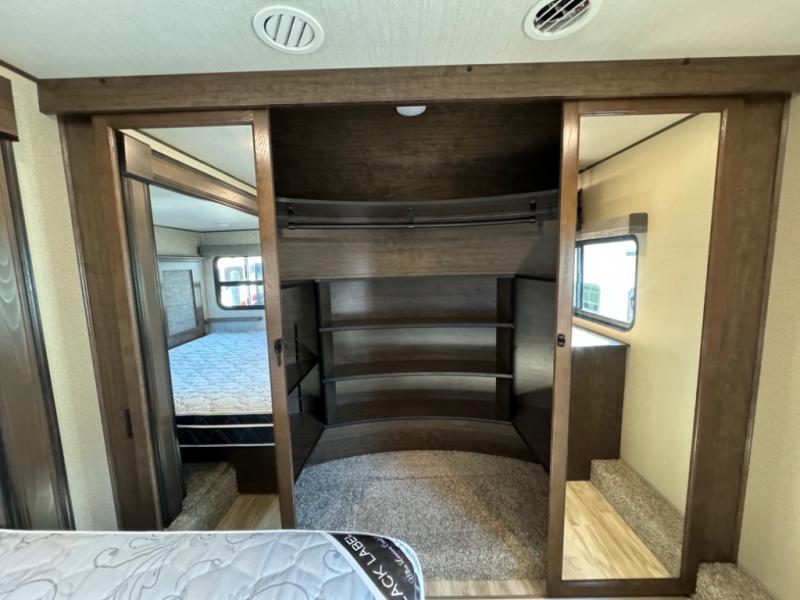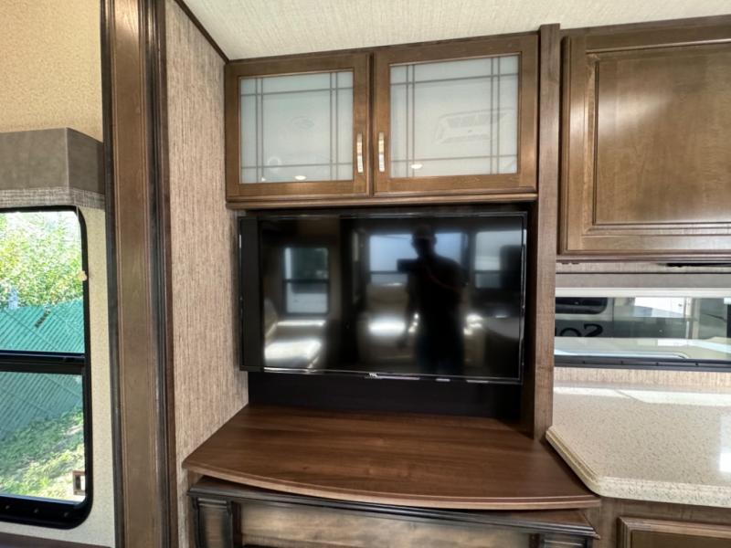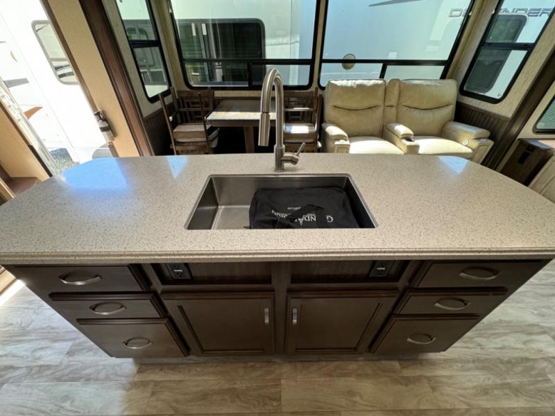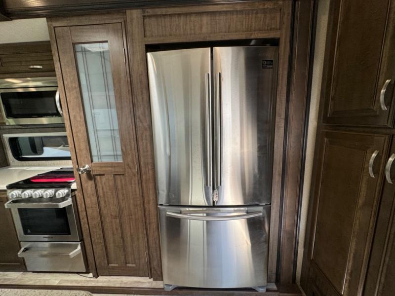 This Solitude S-Class fifth wheel will have you daydreaming about all the places you will visit, and maybe change you into a full-timer once you see all the amenities. Of course your sleeping accommodations are very important to you, the front master suite offers a queen bed or choose an optional king size if you prefer. And your spouse will surely love having their own sink in the bathroom, and plenty of clothing storage in the bedroom. The cook will enjoy using the professional grade stainless steel cooktop and convection microwave, the oversized pantry, the hutch, the stainless steel 12 cu. ft. four door refrigerator, plus the kitchen island. Everyone can relax in the rear living area on the tri-fold sofa or on the theatre seats for a massage. There are many more features to enjoy such as the fireplace, and options to add like a washer and dryer and/or a residential refrigerator. Start your plans now!