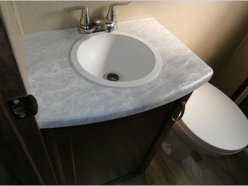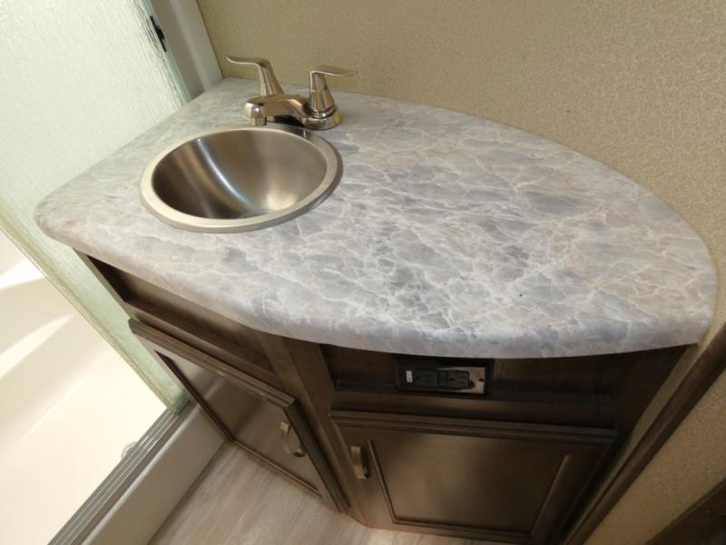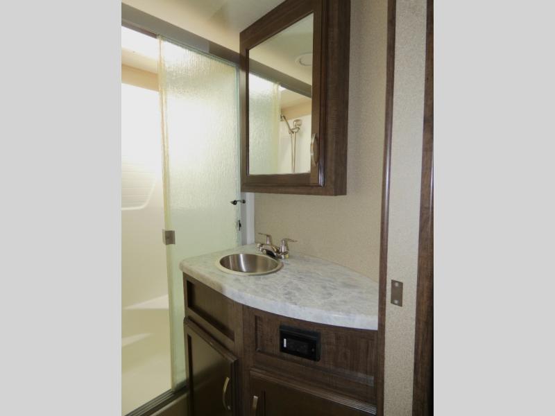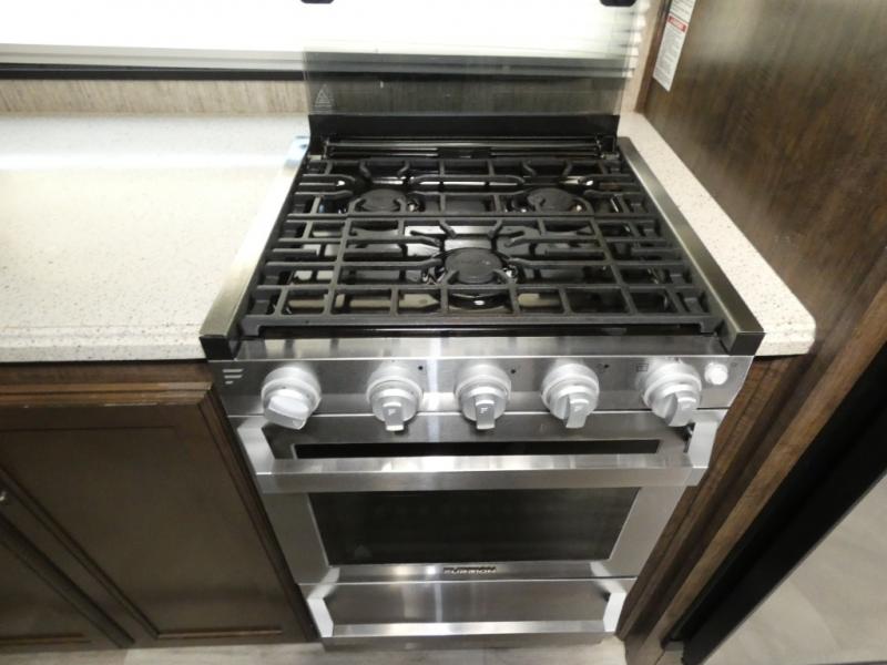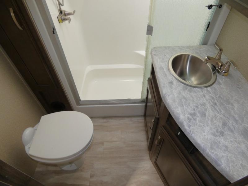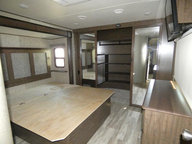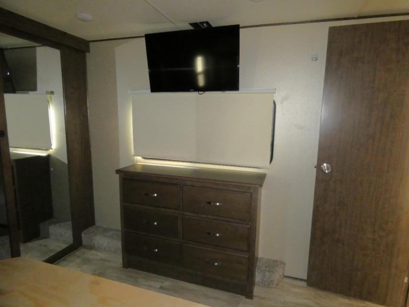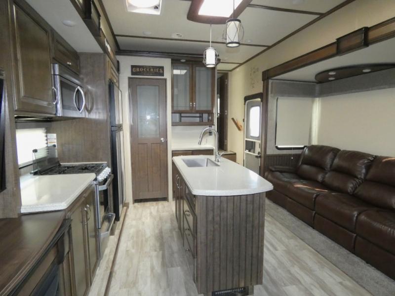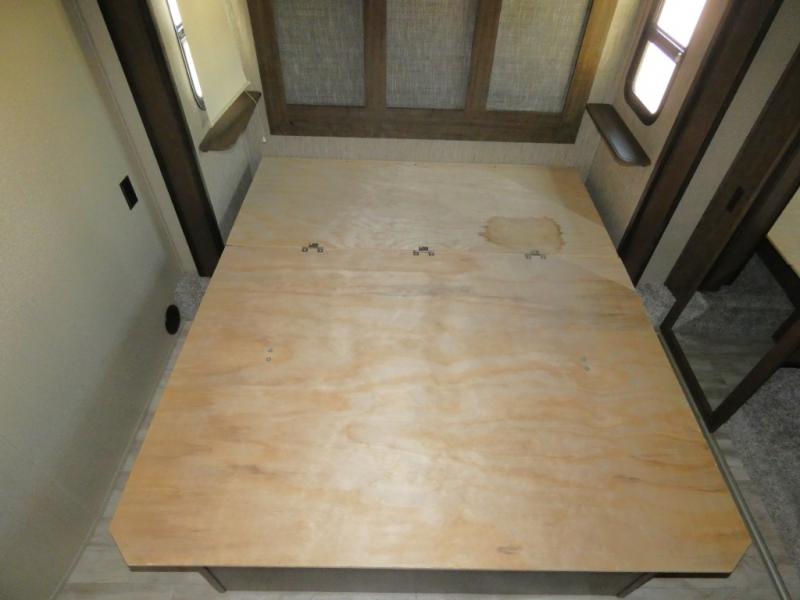 Your search is over! Your kids are going to love having their own bunkhouse with a half bath including the second entry/exit into the fifth wheel. That door will surely be opened and closed all day from all the fun outside and inside. The kiddos will enjoy having their privacy, the tri-fold sofa on rainy days, and having their friends stay the night thanks to all the sleeping space in this one room. The main living and kitchen area will impress anyone, and the kitchen appliances allow you to make a thanksgiving meal. You will surely appreciate all the USB charging outlets, the fireplace, the shock assist SolidStep quad entry steps, and the two awnings.