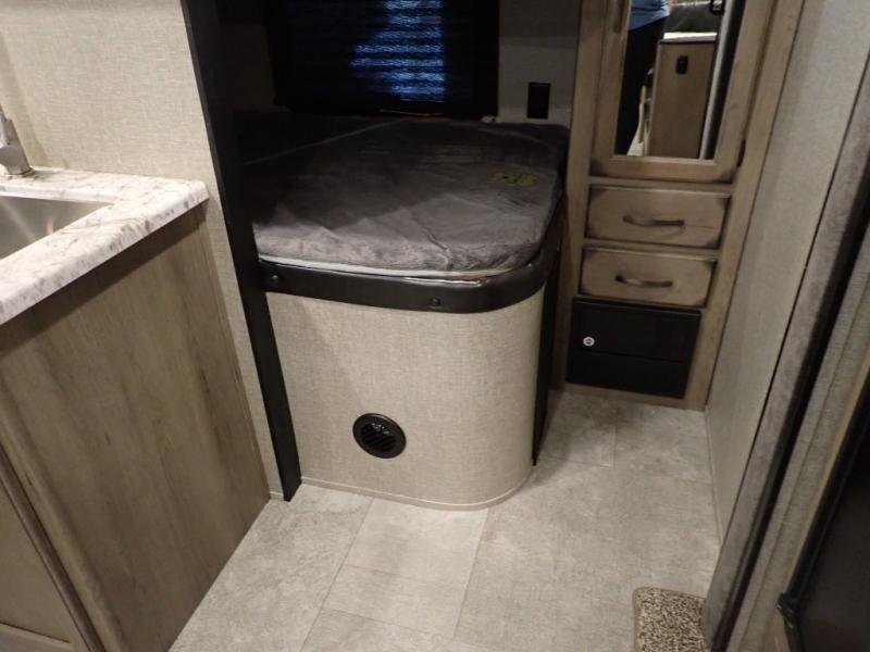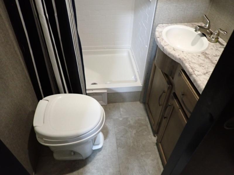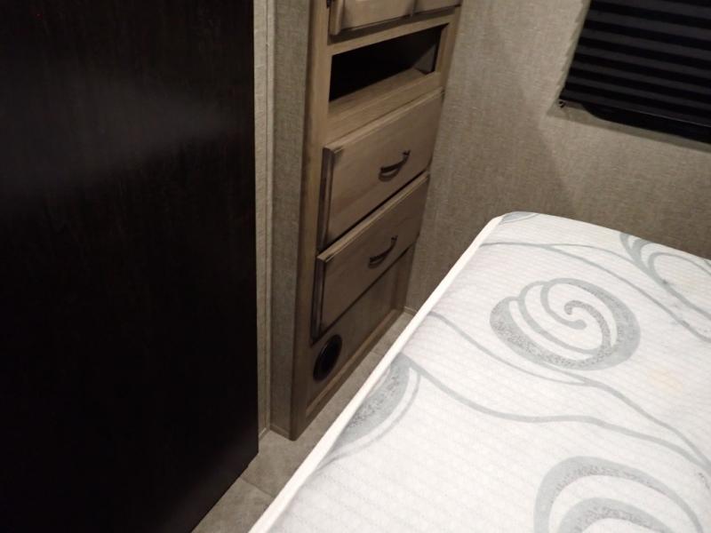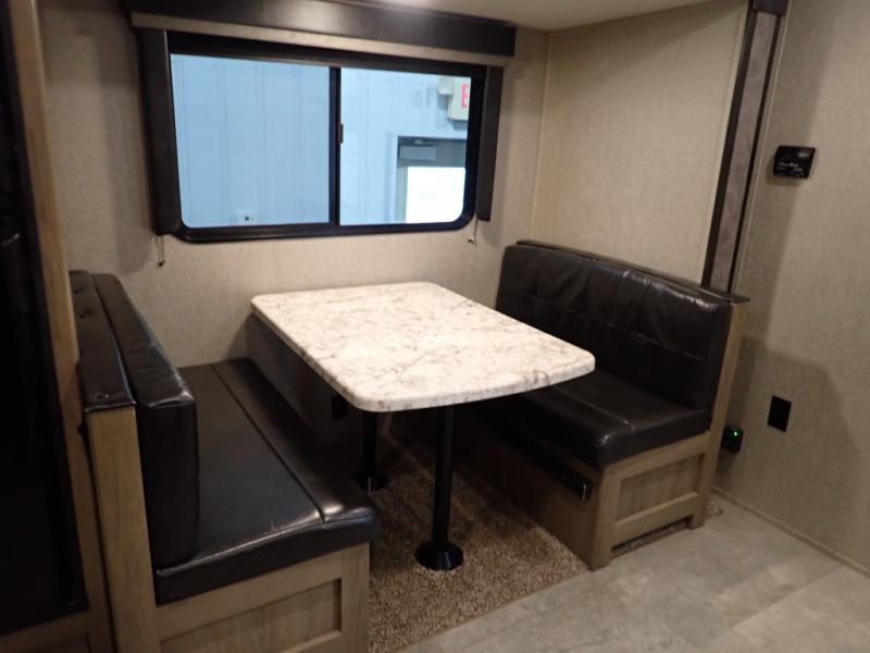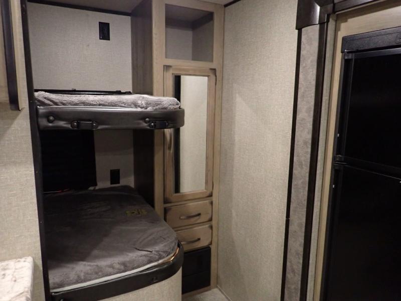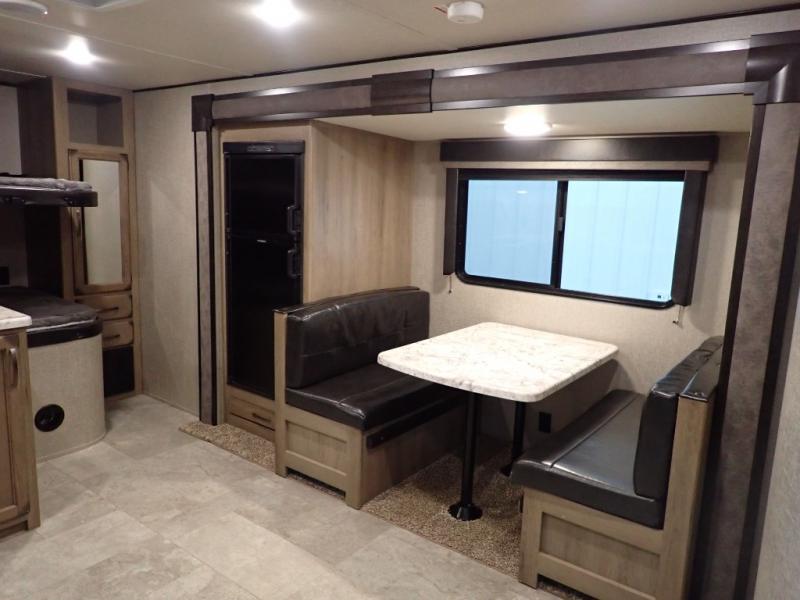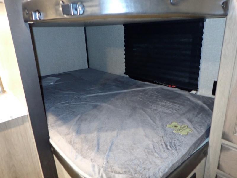 Looking for a set of bunk beds for the kids, and a private bedroom for yourselves? You can probably imagine all of the fun you will have with your family at state parks, national parks, and traveling to see family. From having your own bedding for everyone, plus the booth dinette that offers more than just a dining space, to having your own full bathroom and a pet drawer for your best friend, you will love everything about this trailer. Along the exterior you will find a pull-out drawer, and pass-through storage with 43 cu. ft. to load your larger outdoor camping items and such. This is the one!