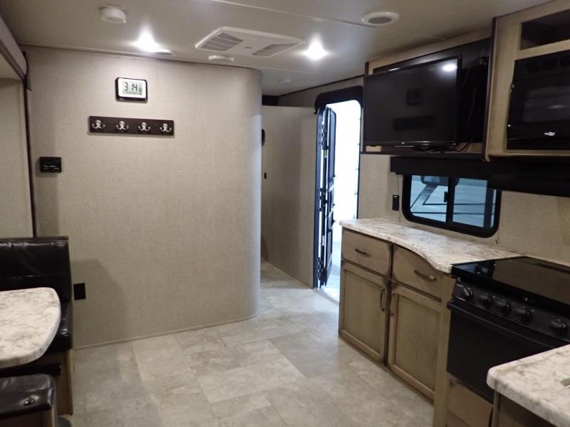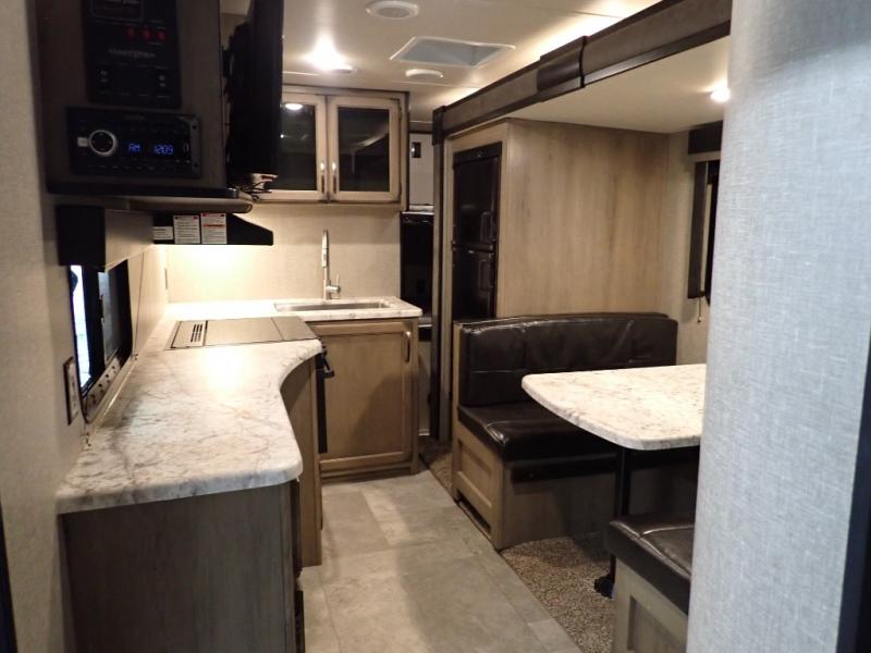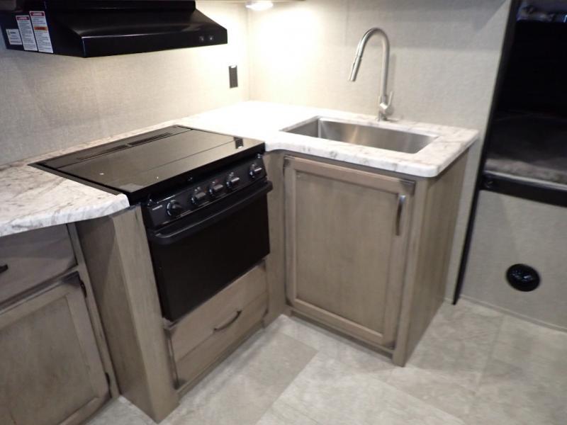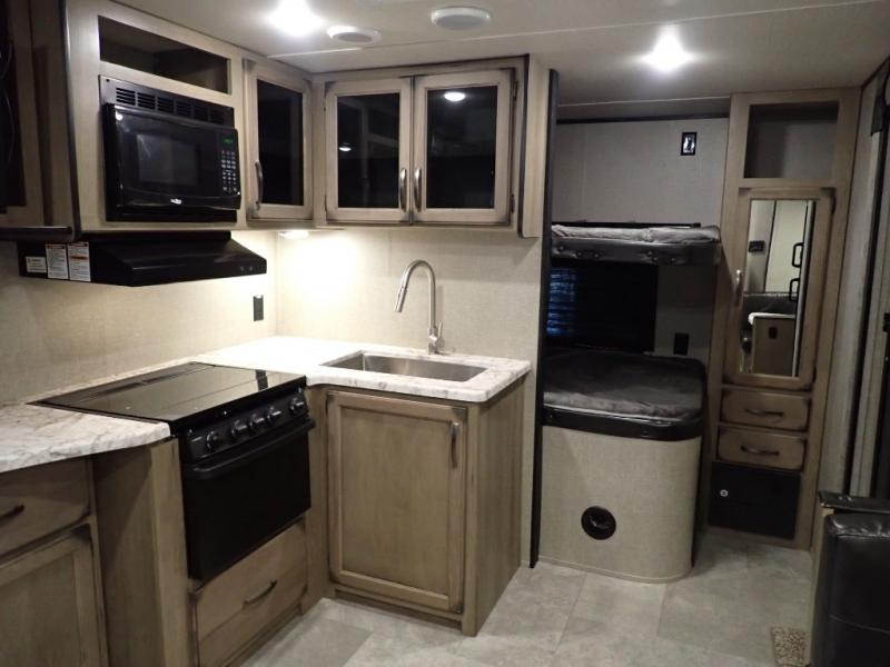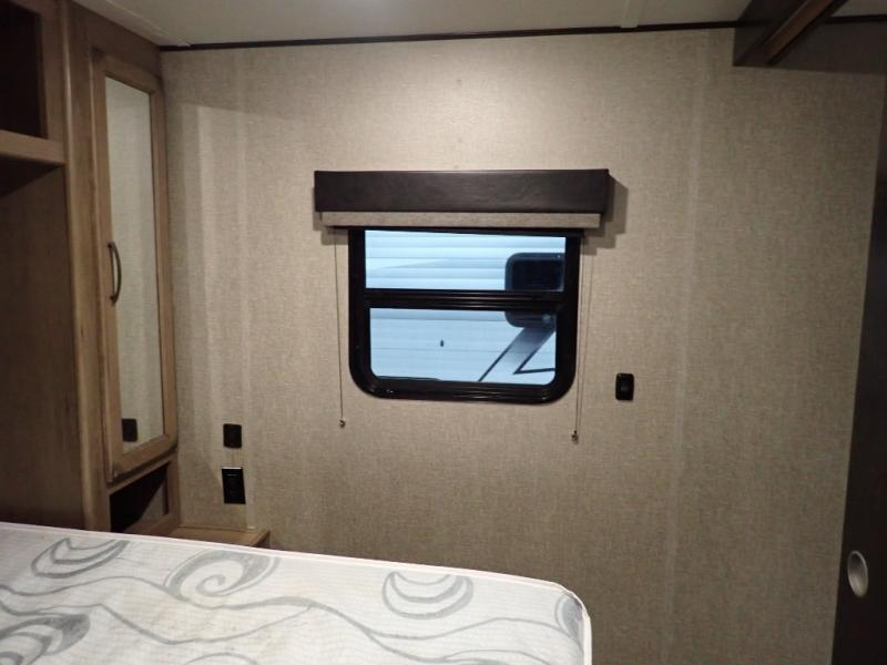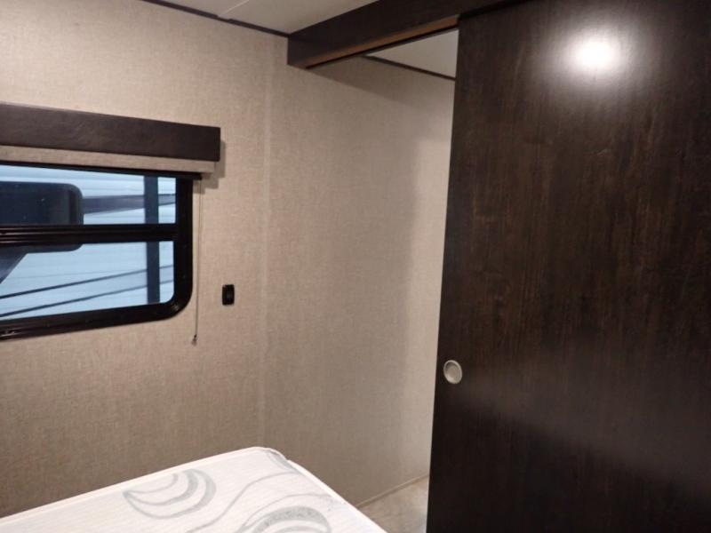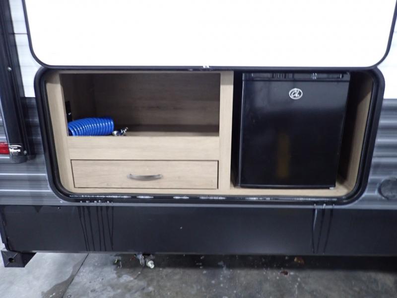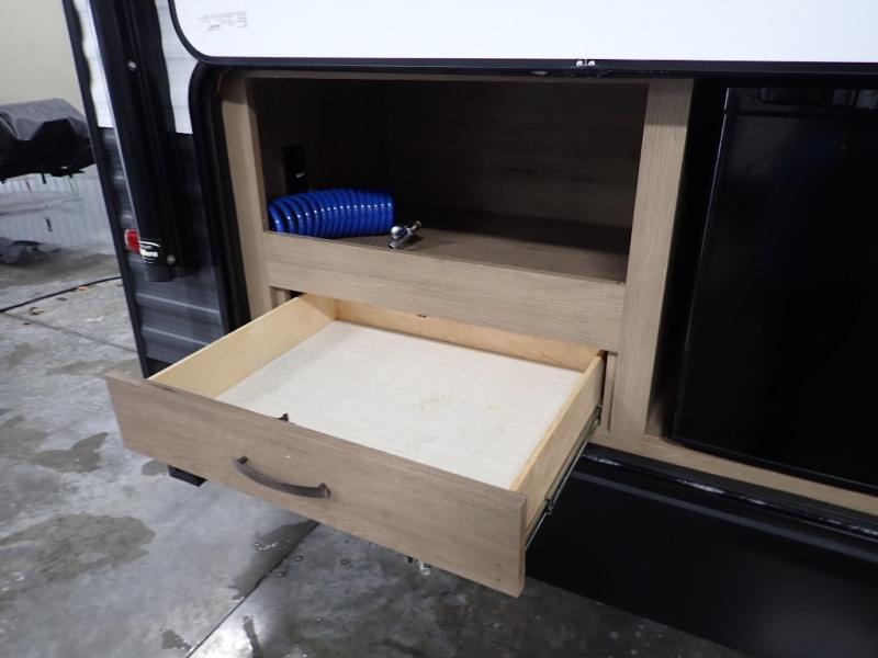Looking for a set of bunk beds for the kids, and a private bedroom for yourselves? You can probably imagine all of the fun you will have with your family at state parks, national parks, and traveling to see family. From having your own bedding for everyone, plus the booth dinette that offers more than just a dining space, to having your own full bathroom and a pet drawer for your best friend, you will love everything about this trailer. Along the exterior you will find a pull-out drawer, and pass-through storage with 43 cu. ft. to load your larger outdoor camping items and such. This is the one!