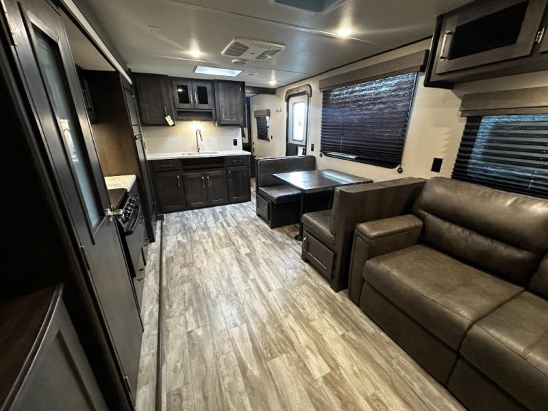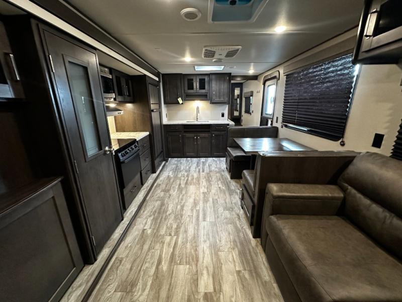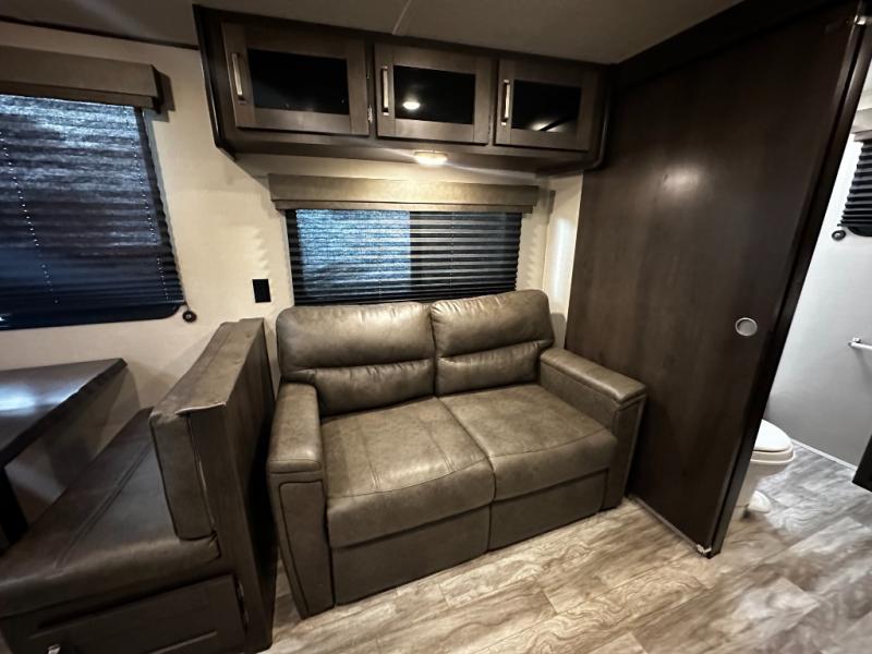This Transcend Xplor travel trailer is the perfect unit for a small family or a couple of friends! The kids can sleep on the booth dinette once folded down for the night, and you will enjoy the front bedroom with a walk-around queen bed. In the morning, whip up some pancakes and eggs on the three-burner cooktop before heading out for the day. The full rear bath with a walk-in shower will allow you to clean up just like you do at home, and the theater seating will be perfect to enjoy a relaxing evening together. This model features plenty of storage space, including overhead compartments and the industry's leading pass-through storage compartment with 43 cubic feet of space!