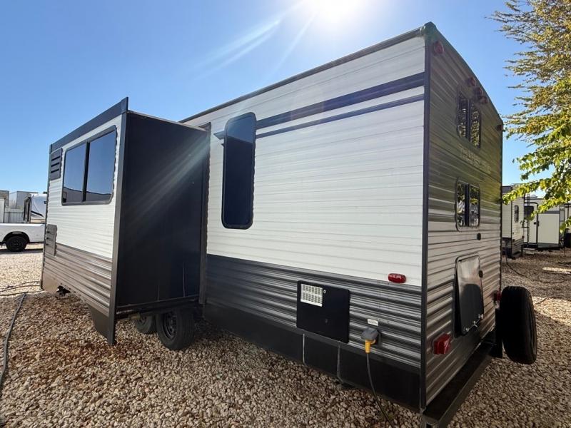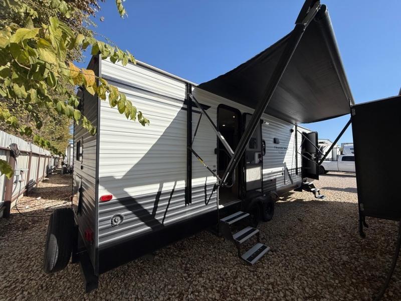 COLD A/C UNITS. 6 GAL WATER HEATER, 30AMP POWER. OUTDOOR STORAGE. OUTDOOR REAR LOADING STORAGE COMPARTMENT, 2 ENTRY DOORS. DUAL AWNINGS WITH LED LIGHTS. LUXURY FEEL THROUGHOUT!! ONLY 6271 UVW.