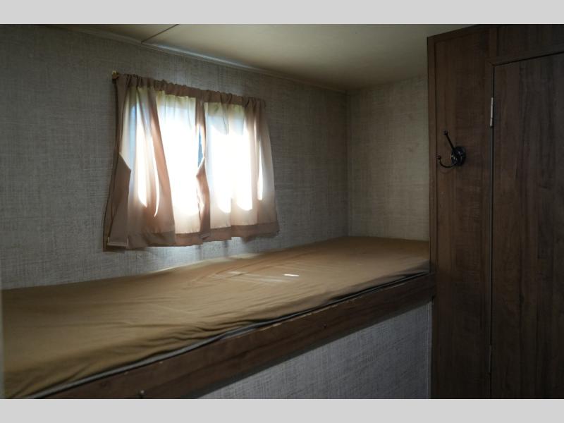 Features private rear bunkhouse with four bunks, front bedroom with queen-size bed, living area slide-out, and Optional outside kitchen. Call Today! 352.787.7744