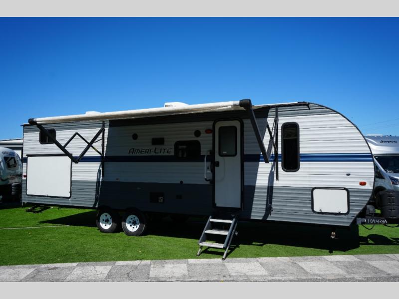 The Ameri-Lite Ultra Lite 279BH offers the perfect balance of space and tow-ability. The private bunkhouse allows kids or guests to have their own area, while the front queen bedroom provides parents with privacy. Ample interior and exterior storage makes this trailer easy to pack and organize, and its Ultra Lite design helps keep towing manageable.