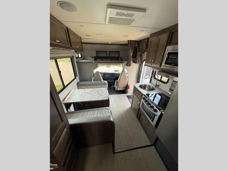 As you look forward to your next getaway, think about the many different ways that this Conquest Class C gas motorhome will come in handy! When you're tired after a long day of hiking, you won't have to search out a local restaurant because you'll be able to easily make your own dinner on the three-burner range in the kitchen, grab some condiments from the double-door refrigerator, and wash up the dirty dishes in the double sink. When you just want to rest, you have quite a few choices for that too with the booth dinette, the jackknife sofa, the bunk above the cab, and the RV queen bed in the rear private bedroom.