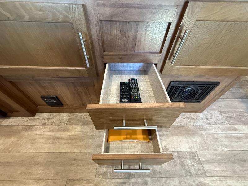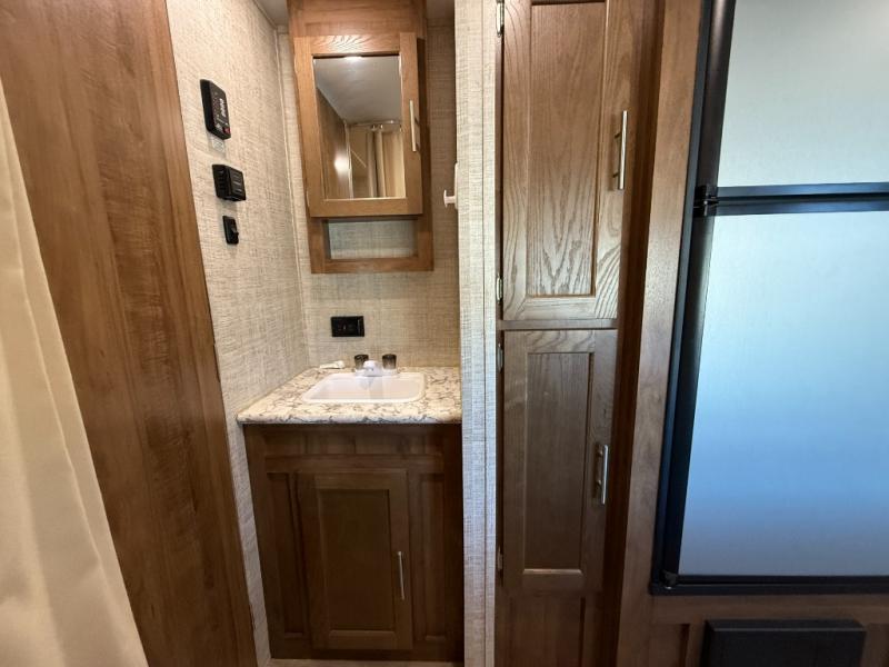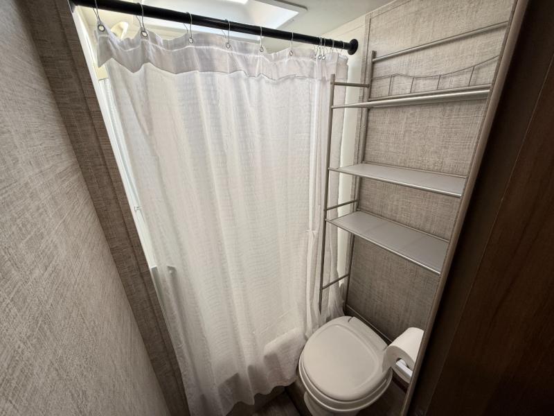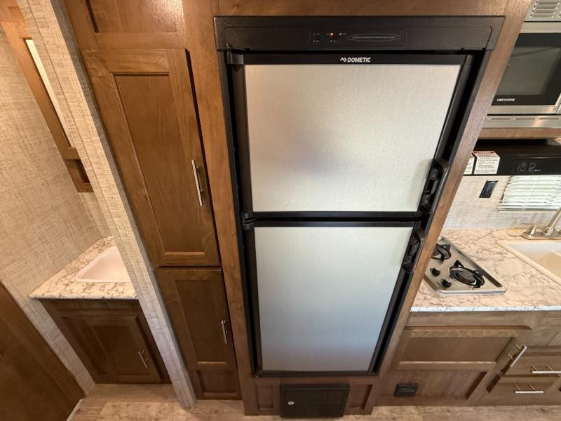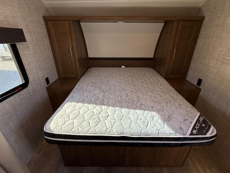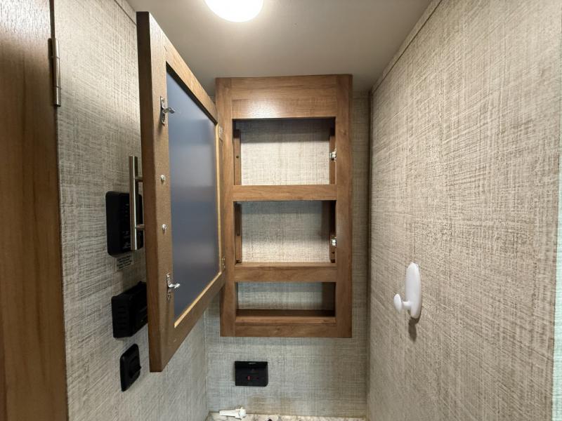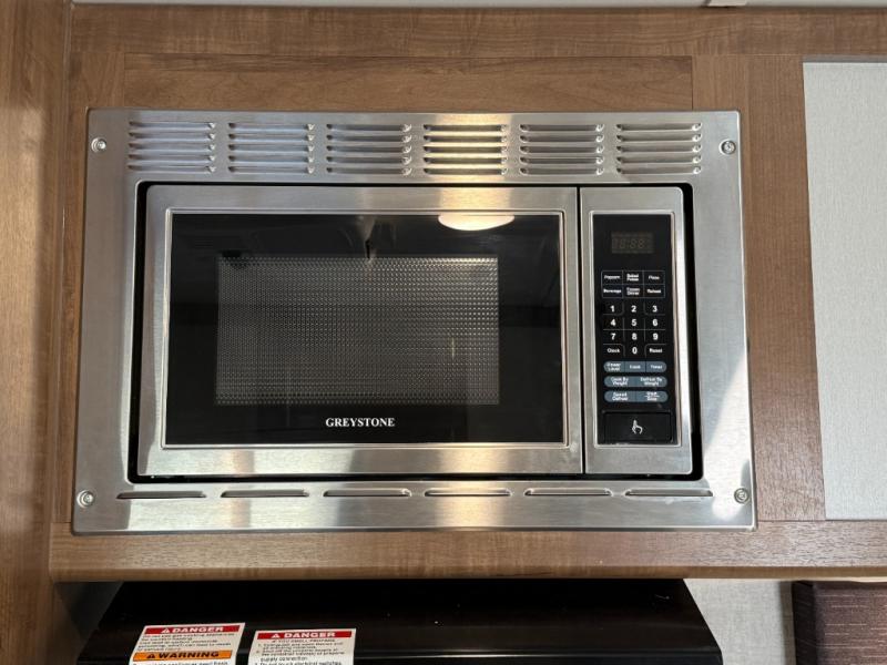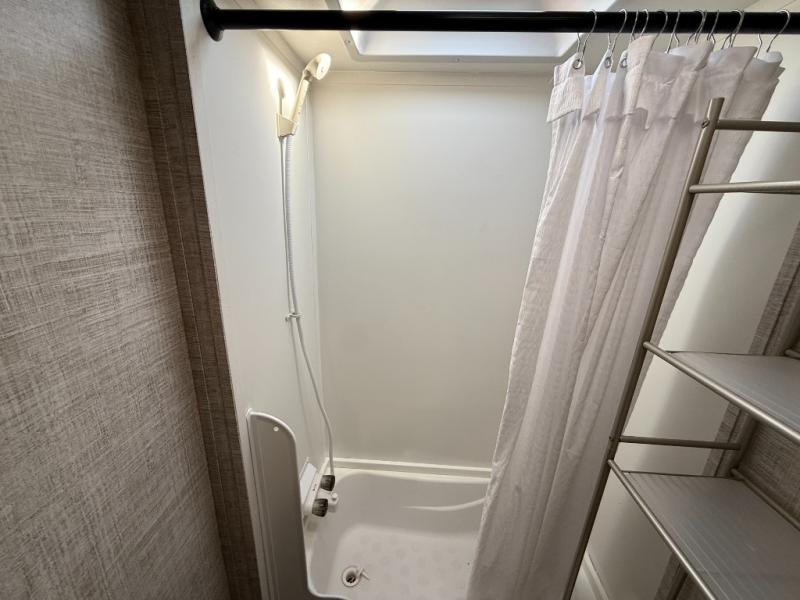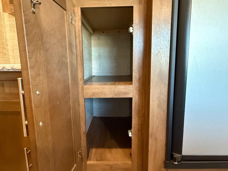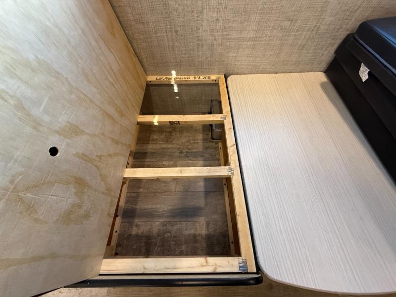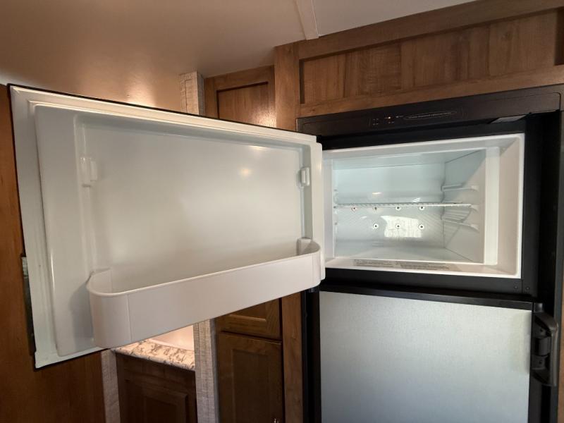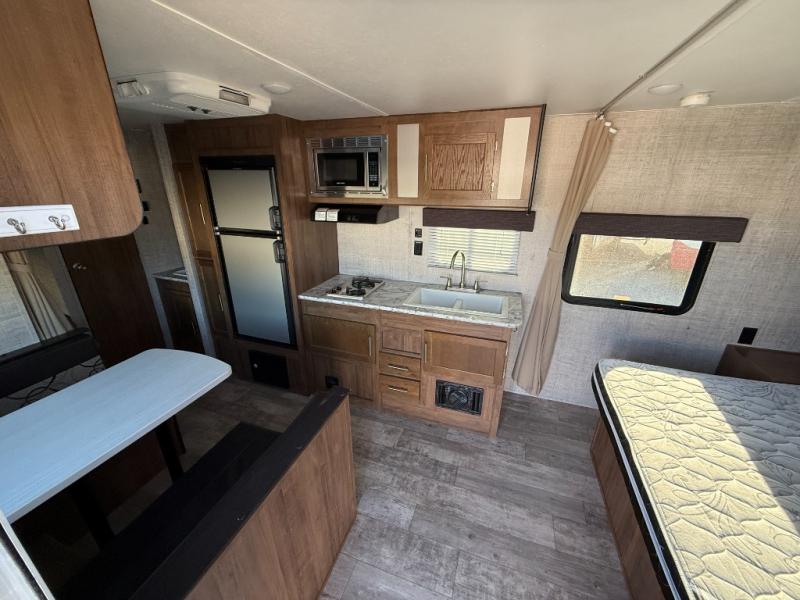 You and your family will enjoy sleeping in this trailer with double size bunk beds for the kids and their friends, a queen bed for the parents or choose the optional Murphy bed/sofa, and a booth dinette to sleep one more! The seven of you can wake up and take a hike or walk around the campgrounds, and someone can stay back to make breakfast in the galley kitchen with everything needed for warm meals. Everyone can take turns getting ready in the private toilet and tub/shower room while others take turns brushing their teeth in the single bath sink just outside the bath door. You will find plenty of storage for your clothes, dishes, and your outdoor camping gear in the pass-through compartment.