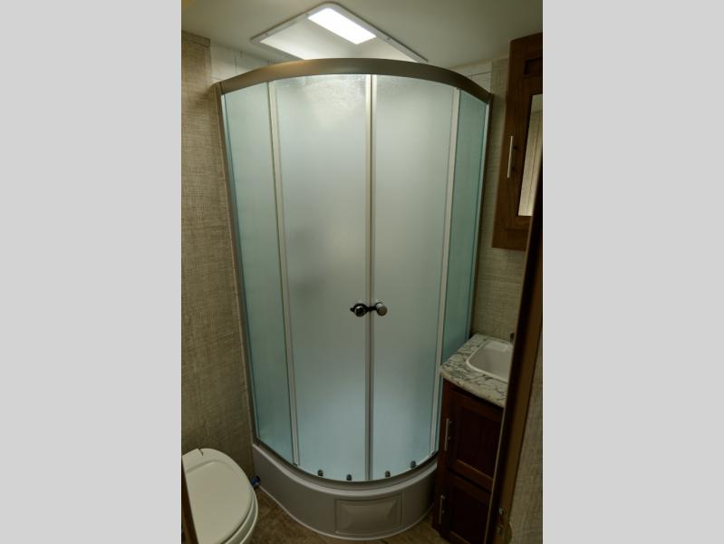 With woodgrain vinyl flooring, laminated countertops, LED lighting, and an electric awning, the Gulf Stream Kingsport Ultra Lite travel trailer delivers both function and style no matter where you choose to look. As you tour the countryside in your Kingsport Ultra Lite, you will appreciate being able to take in all of that beautiful scenery through any of the radius safety glass windows, and the skylight above the shower will ensure that the sun's rays make it into the bathroom to add extra light as you get ready each morning.