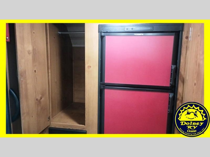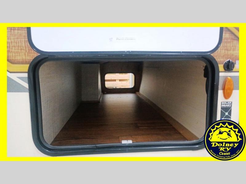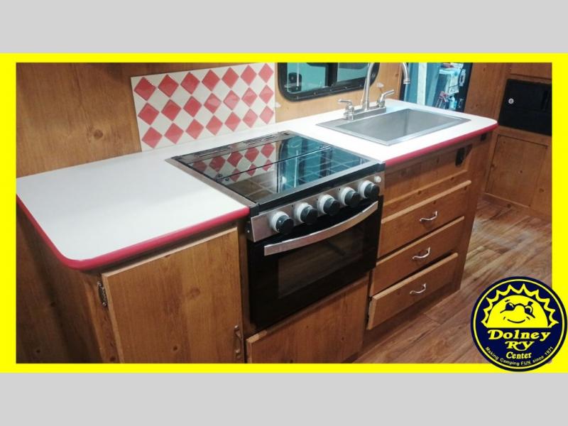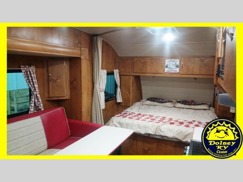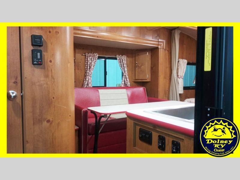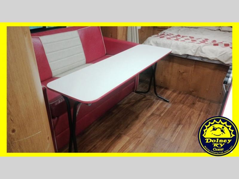 You are going to love camping in this family-friendly retro-looking Vintage Cruiser travel trailer! There is sleeping for four with the front 60" x 74" bed and sofa bed. The 60" folding table is great for meals, puzzles, and games, and you will enjoy plenty of storage space both inside and out with overhead cabinets, shirt wardrobes, and drawers. You will also appreciate the amount of storage found in the front exterior pass-through compartment for all of your exterior camping equipment too. With the curtains and blinds opened, there is plenty of natural lighting, and the LED lights throughout make everything bright and cheerful even on a cloudy day or at night. Oh, and don't let the vintage vibe throw you because this unit features plenty of conveniences like a full bathroom, inside and outside USB charging ports, a gas water heater, and so much more!