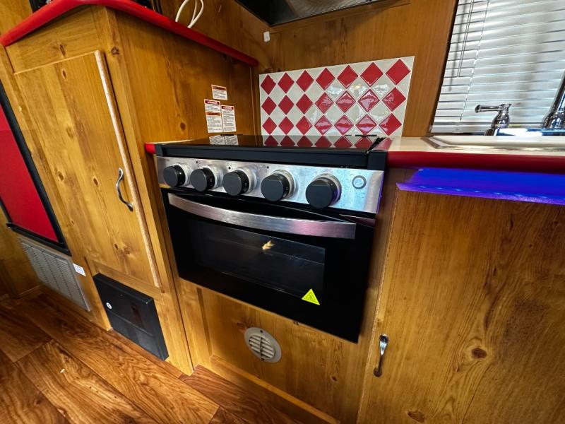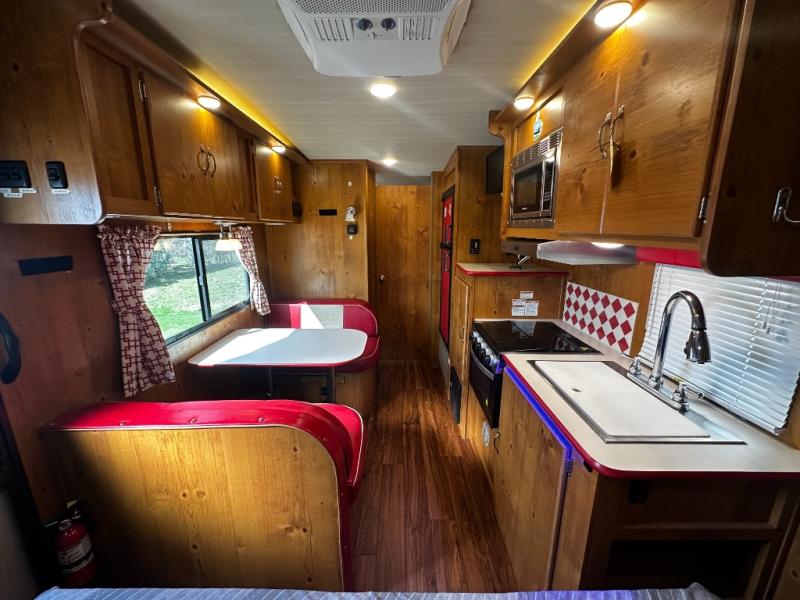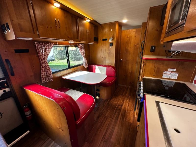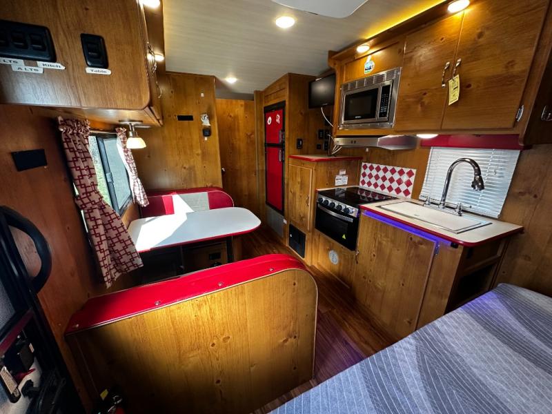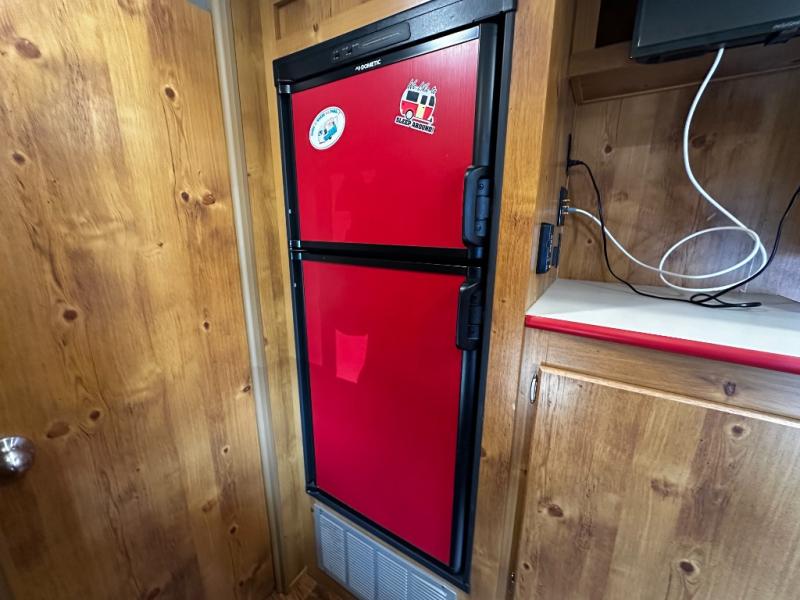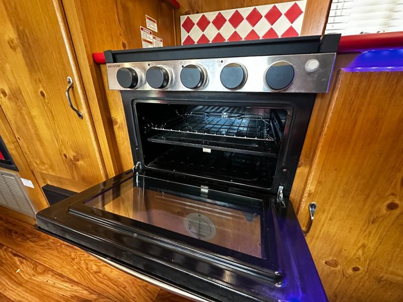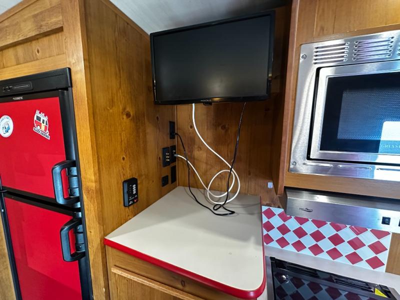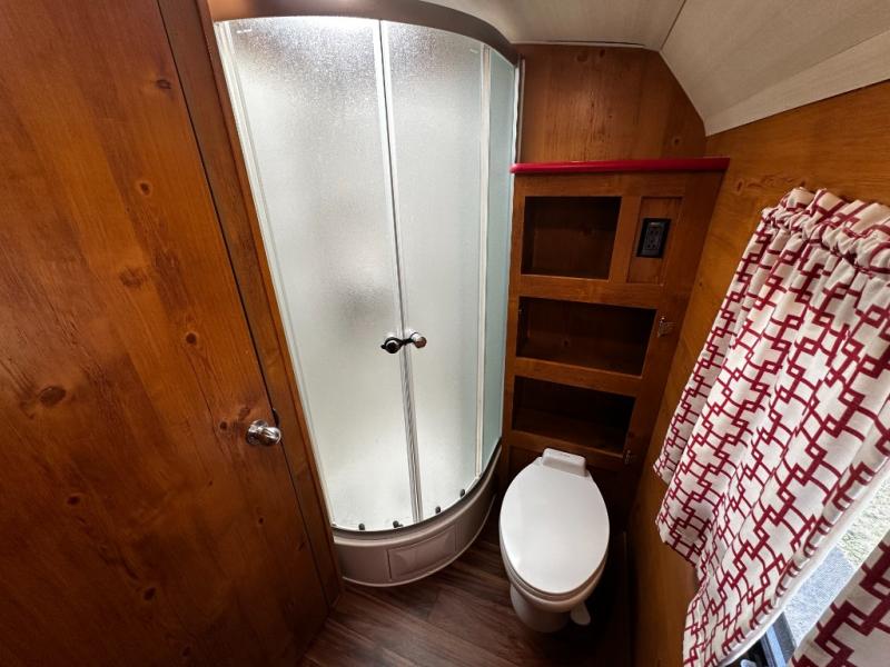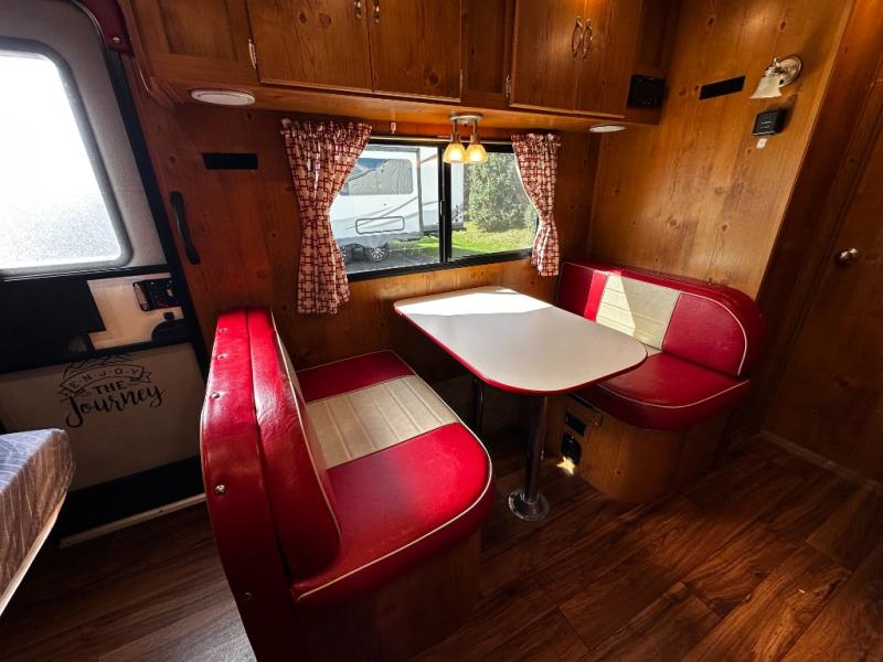 Everywhere you look in this Vintage Cruiser travel trailer you will see the view you chose for your camp outing as there are windows in every space, even the bathroom. Between tons of natural light and the LED lighting throughout, you will find the inside fresh and bright even on a cloudy day. Every morning you can wake to the sights and sounds of nature after a great night's sleep on the queen bed and then head to a spacious rear bath to get ready for your new day. The skylight above the shower will bring in more light to wake you along with the smells of breakfast being made just outside the door. There is a TV mount opposite the dinette if you choose to add an HDTV for enjoyment, plus you will also find multiple USB locations both inside and out for keeping all of your electronics charged.
