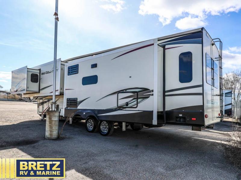 Get ready to enjoy the country with a Big Country fifth wheel by Heartland. These models have a heated and enclosed underbelly which allows you to camp in all types of weather. Also along the exterior you will find large storage areas, exterior speakers, a light at the entry step, plus a six-point hydraulic level-up auto leveling system. Inside there are stained hardwood cabinets, plus a deep stainless steel kitchen sink. The living room features night shades throughout to provide you the most privacy, plus there is a high-output entertainment system with DVD/Bluetooth and HDMI. There are plenty of options to choose from, as well as the Elite Package and the Independence Package.