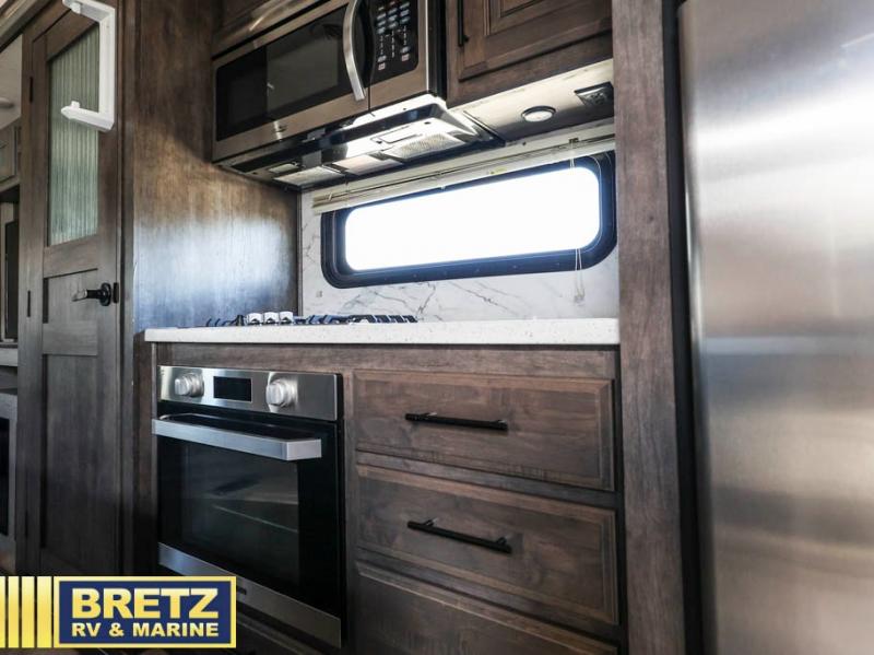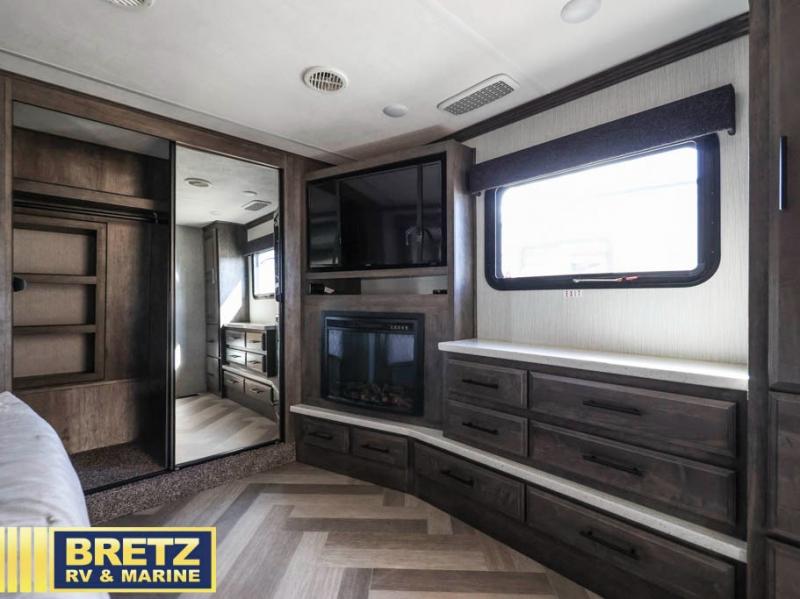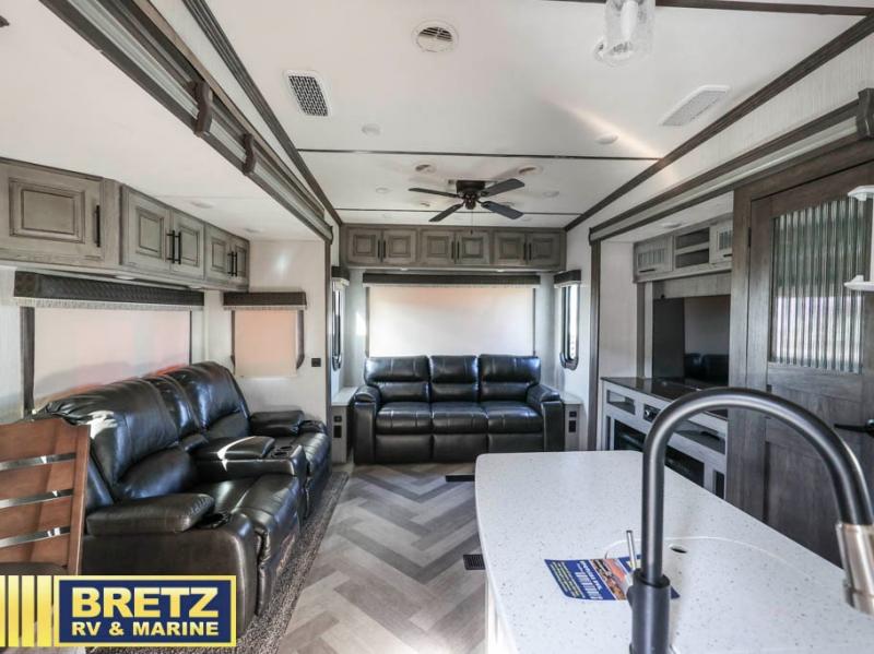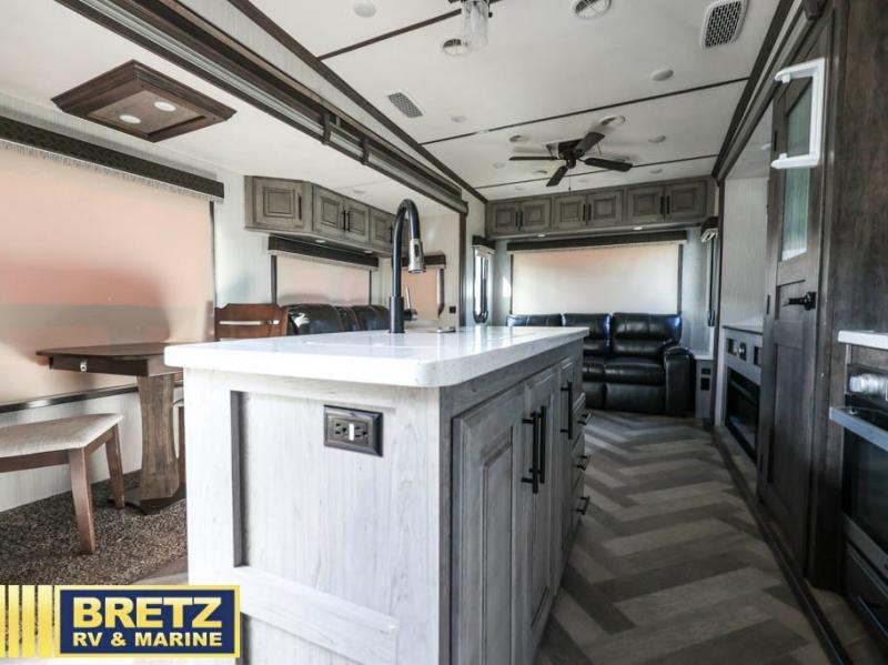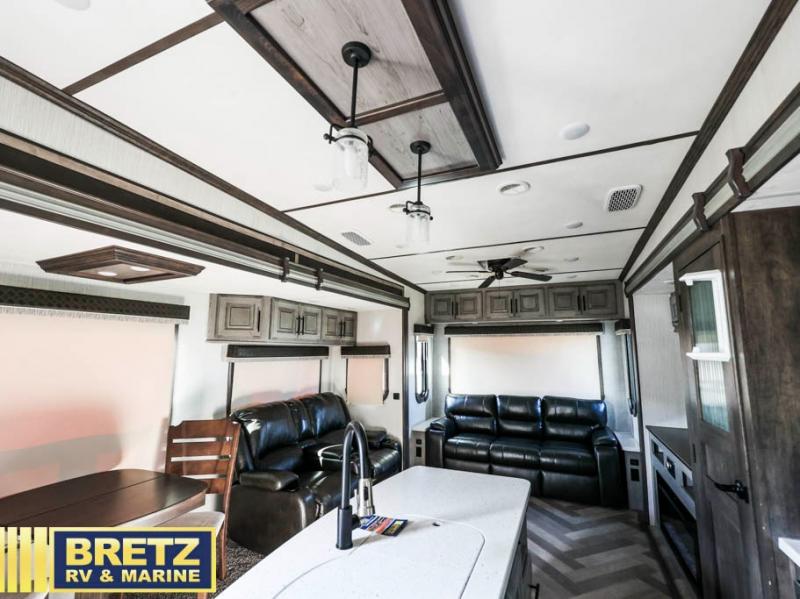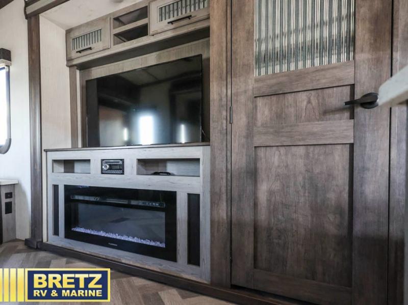 Plan to make plenty of memories with your family camping in this Big Country 3560 SS fifth wheel by Heartland. You will love how spacious the inside of this model feels. Plus there are plenty of comforts throughout such as the four slide outs, the rear living area, an optional fireplace, as well as optional theater seats, and in the kitchen there is plenty of work space at the island. The front bedroom has one of the slide outs with a king bed plus you will find plenty of space to move around in this room!