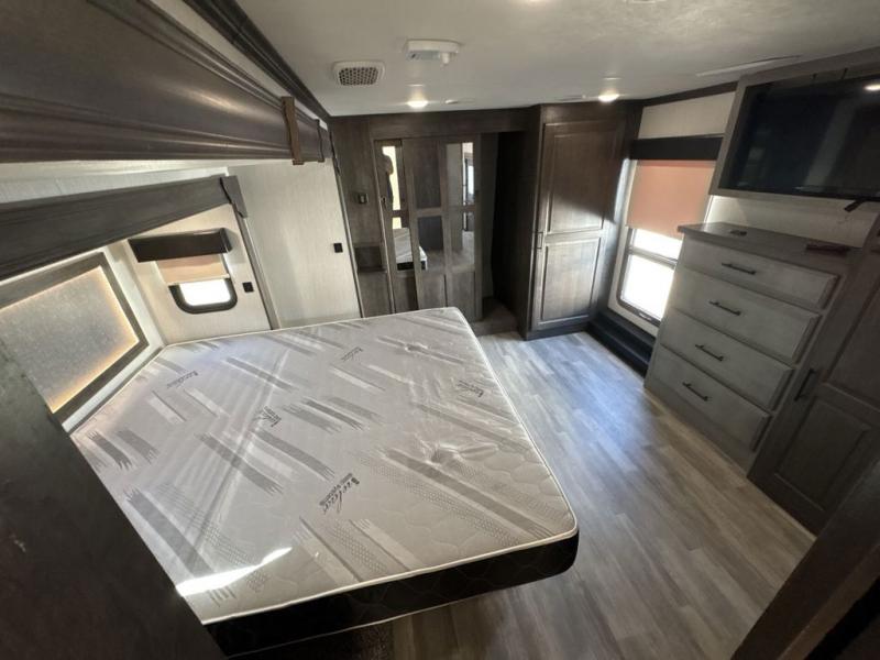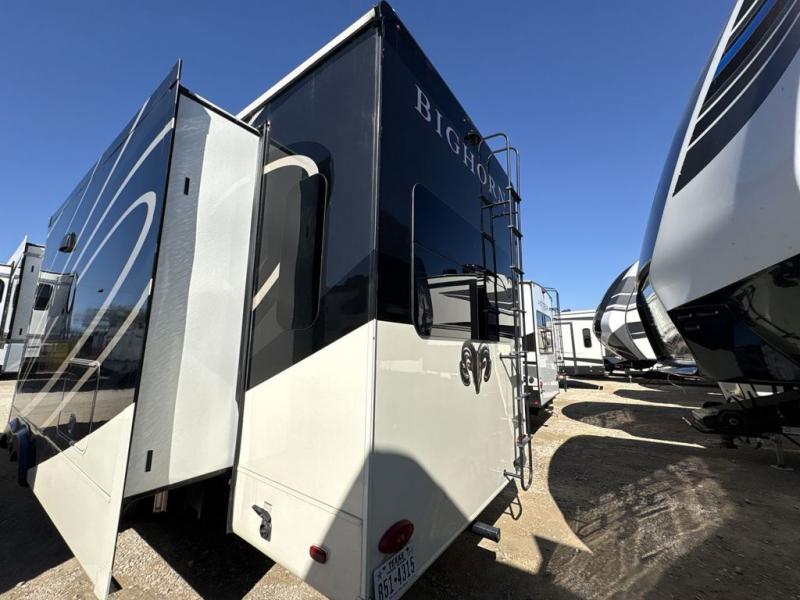Each Bighorn fifth wheel by Heartland features a double-welded aircraft-quality aluminum superstructure cage construction, a strong 12" I-beam frame with rust-prohibitive coating, patent pending front cap and frame design, and walkable roof decking to provide a strong unit that will last for years to come. The convenient Universal Docking Center features a 12V light, an exterior shower with hot/cold water, a satellite hook-up, and winterization valves. With each model, you'll enjoy glazed hardwood cabinetry, recessed LED lighting in the kitchen, 20" deep residential-size drawers, pre-wiring for the Winegard Trav'ler satellite system, and decorative glass door inserts plus so much more! Choose your favorite today!