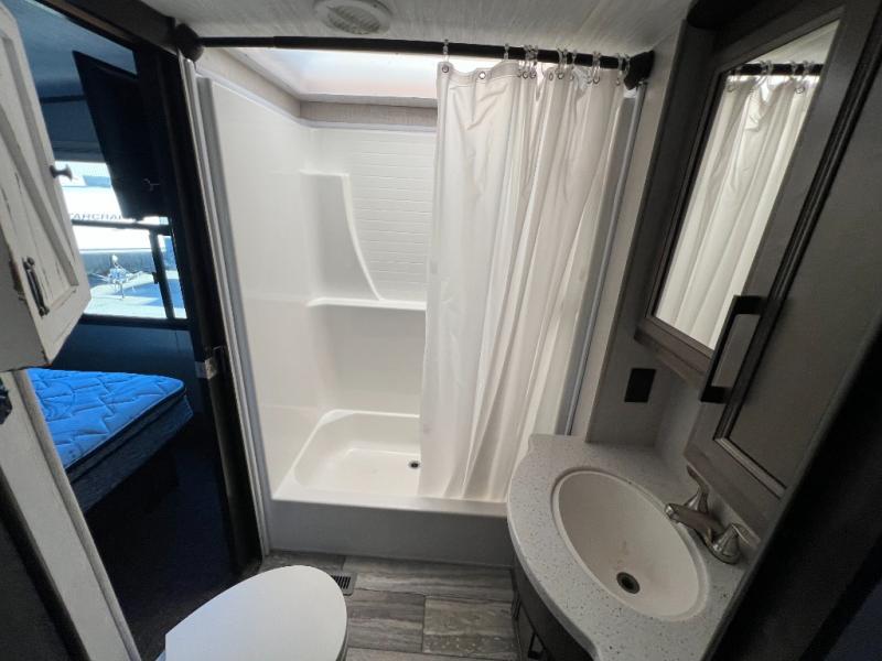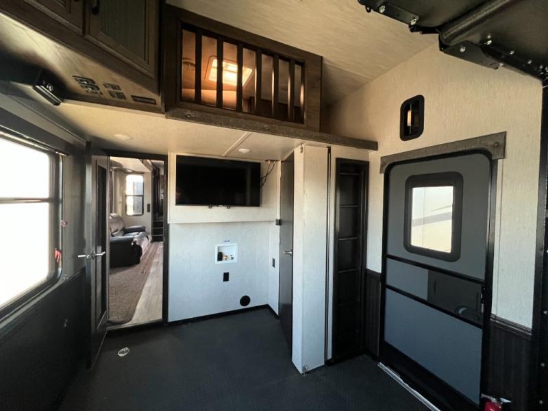 Come load up your off-road toys and your family, and head out to your favorite destination where you can camp and play outdoors. This Heartland Cyclone 4270 toy hauler fifth wheel features a side patio where you can enjoy being outdoors but yet you are up off the ground. In the garage, after your riding gear is unloaded you then have 13' of livable space. Here there are plenty of cabinets, an electric queen bed plus a split bench seat which converts into a bed. Above the garage there is a loft which adds a fun spot for your kids, plus with a dual entry bath everyone can easily get ready for the day. In the front bedroom you will find a tilting king bed where you can relax and get a good night's rest!