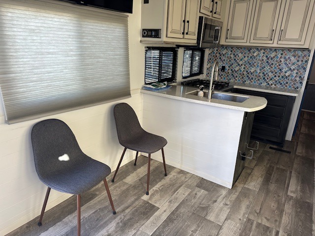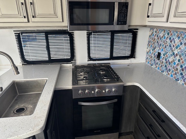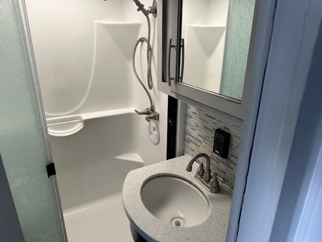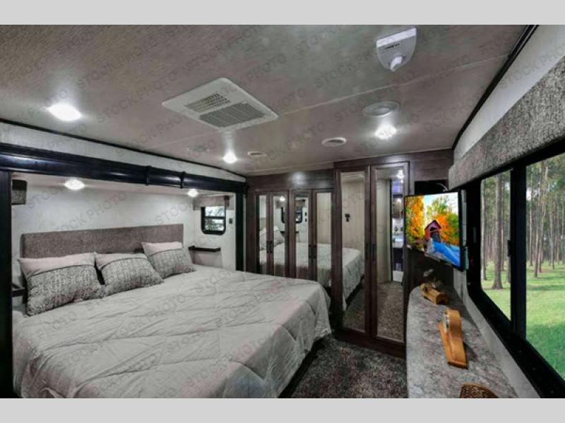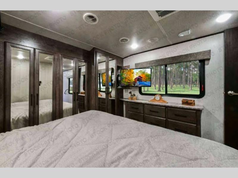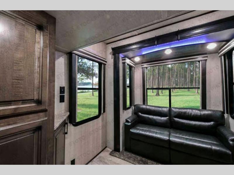 When you are ready for a relaxing time away from home, come choose a Gateway luxury fifth wheel! The Dexter axles with MorRyde suspension provide a smooth ride, and the weatherguard insulation package allows you to camp in all types of outdoor conditions. To add to the modern style, stainless steel appliances have been installed which create a sleek and polished finish, and the one-piece fiberglass shower with seat and LED-backlit lavatory sink will stun both you and your guests upon entry.