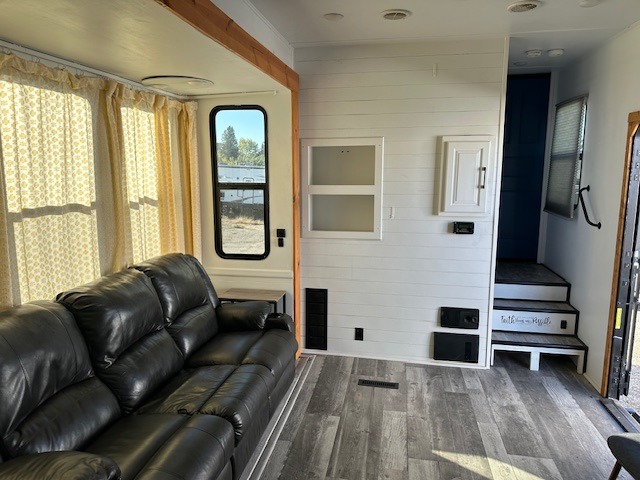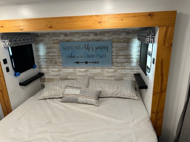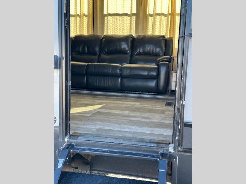 Your family will just love going for an extended-stay vacation in this luxurious triple-slide Gateway fifth wheel. Your kids may disappear into the rear private bedroom to play because they will have their own sofa, half bath, and loft. The central living area features plenty of room to visit with your family and friends since there is a large sofa and dinette with a bench seat. When the weather is nice, you will want to move outdoors and visit under the electric awnings with LED lights, plus there is an outdoor kitchen where you can store drinks or snacks!