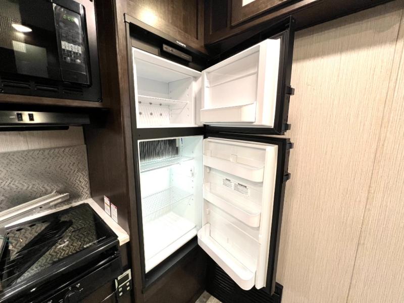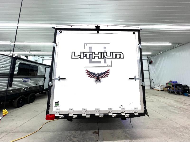Keep spirits high with this Lithium toy hauler! This trailer will invigorate your outdoor spirit with its helpful features, like a full kitchen with a three-burner range and oven and a master suite with a king-size bed and private entrance into the full bathroom. You will also find this unit to be a great place to relax at the end of a long day with a lounge chair and fold-up sofas with table in the main living area.