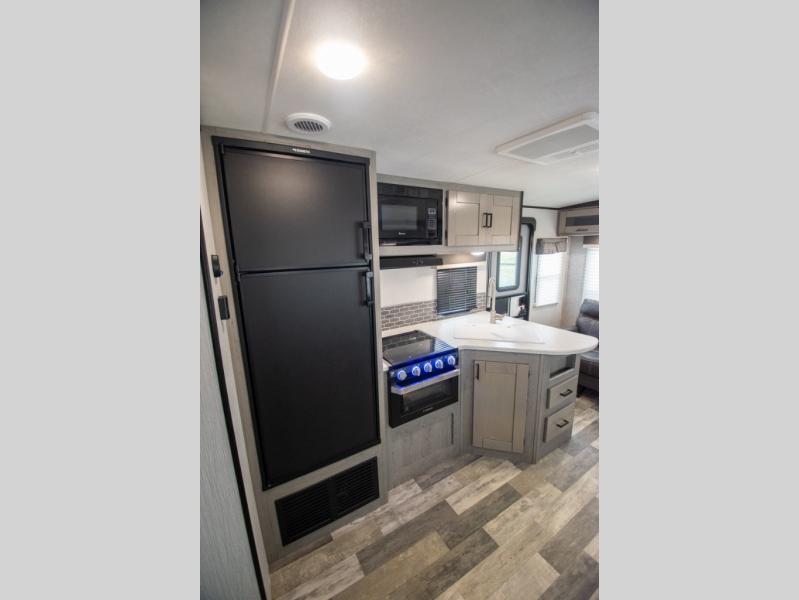 You won't ever want to leave the campground once you start camping in this dual entry Mallard Ultra Lite travel trailer! There is plenty of seating for everyone between the rear set of recliner chairs, and the sofa next to the booth dinette, both of which can transform into extra sleeping space when needed. You will have no problem whipping up your favorite meals inside the complete kitchen, and the 8 cu. ft. double door refrigerator is big enough to keep all of your perishables cold and fresh. What better way to wind down your night than to take a nice, hot shower in the full bathroom then head into the front private bedroom to enjoy a good night's rest on the king bed.