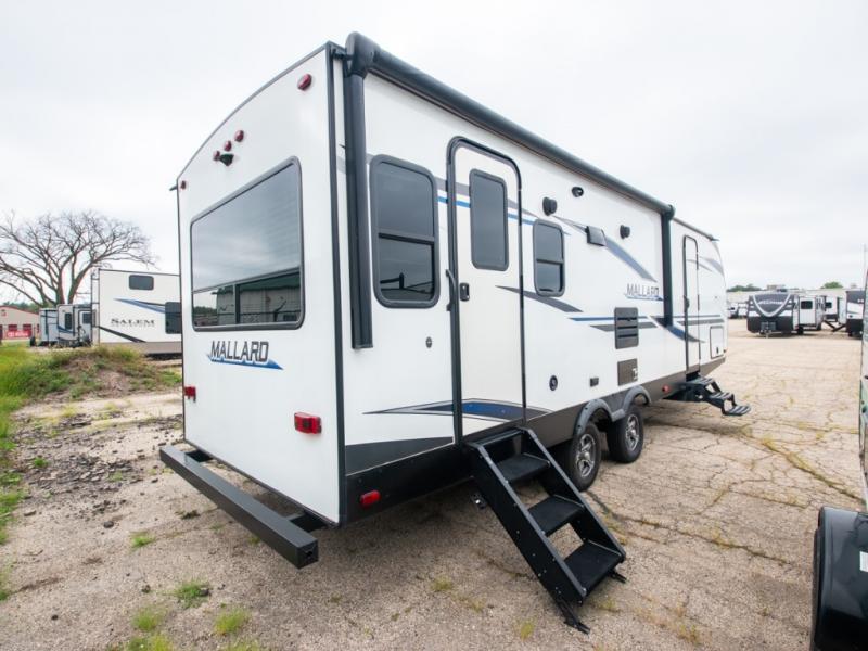With any Mallard Ultra Lite travel trailer by Heartland, there is a automotive grade painted front cap with LED accent lights, six-sided aluminum construction, leaf spring suspension, a Wide Trax axle system, a power tongue and stabilizer jacks, plus more features giving you years of enjoyment during any season. The spacious interior is inviting with arched ceilings, the overstuffed residential grade furniture is comfortable, and the King Kong sized pass-through storage allows you to leave nothing behind. Spread your wings, choose a Mallard today!