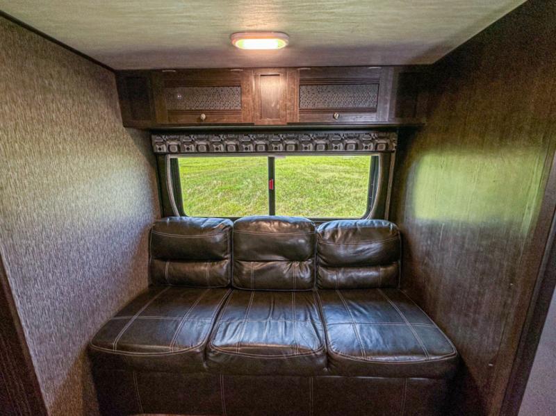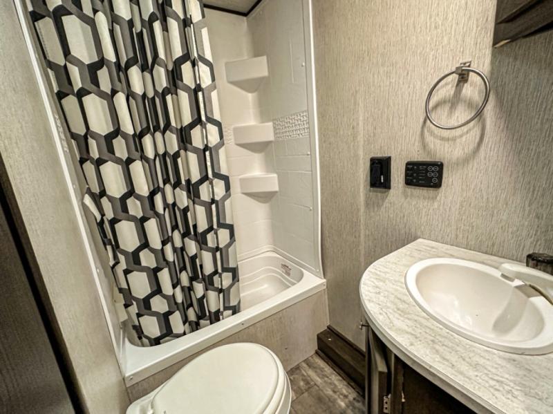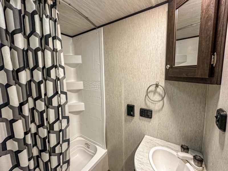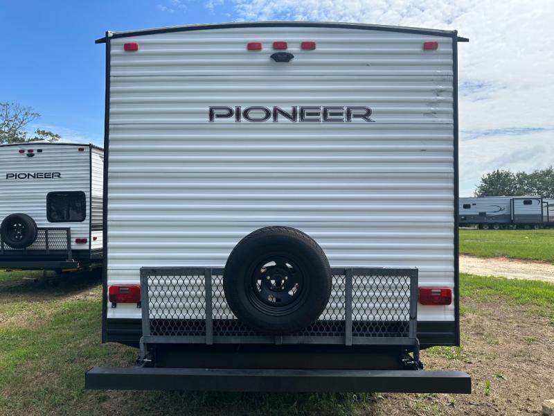 Are you ready to hit the trails and see the world? With this Pioneer travel trailer, you can confidently travel away from home knowing that everything you need will be right at your fingertips. You won't have to search for restaurants because you will be able to create all of your favorite dishes in the full kitchen, and forget about trekking to the public bathroom facilities each morning because the full bathroom with its shower and medicine cabinet will make it easy to prepare yourself for the fun day ahead. As you sit down at the booth dinette to plan out your schedule, you will appreciate how the tinted safety-glass windows will prevent the intense morning sun from heating up the interior.