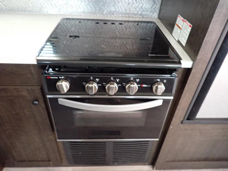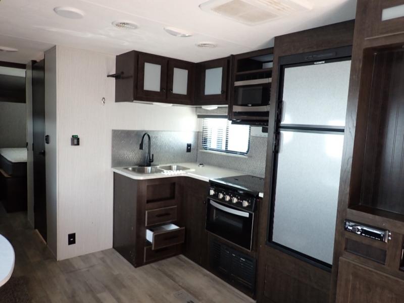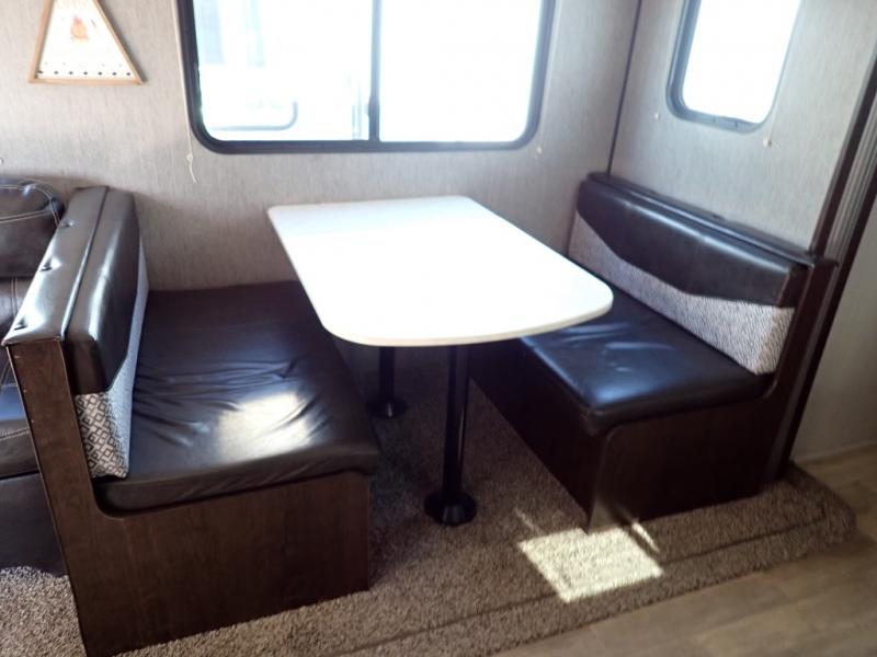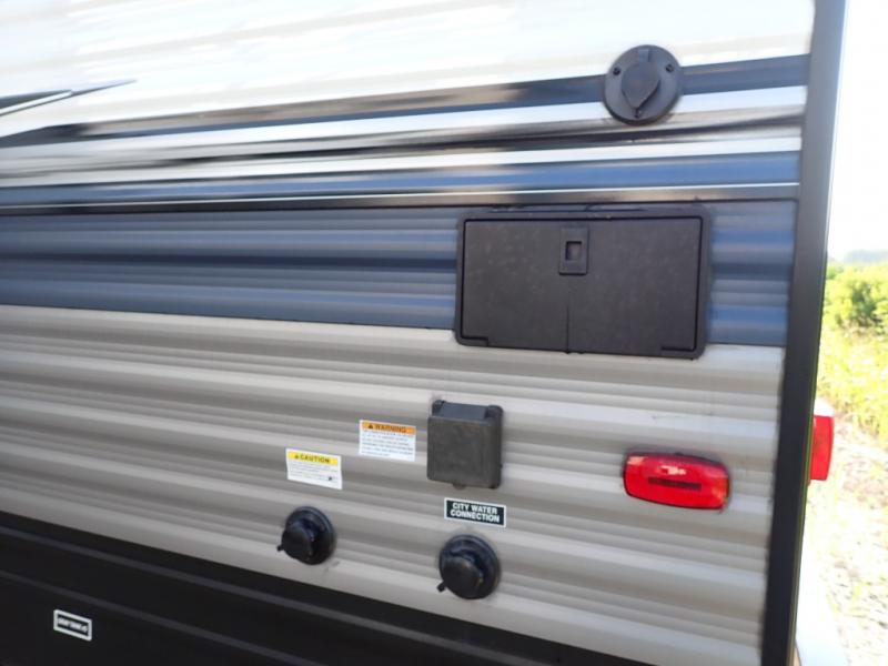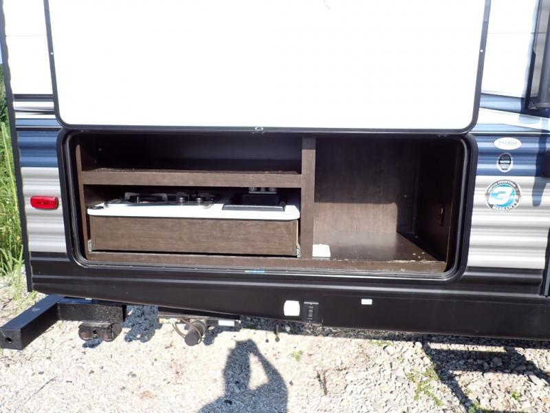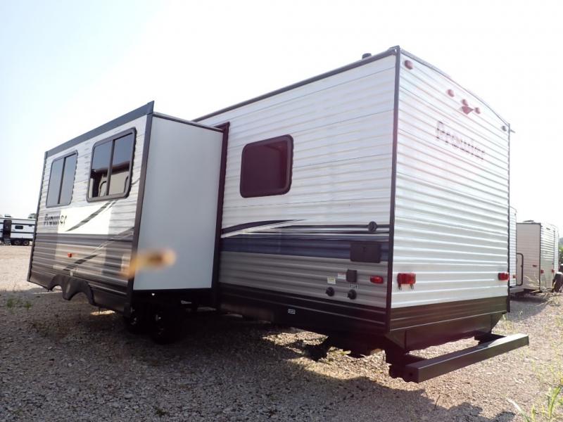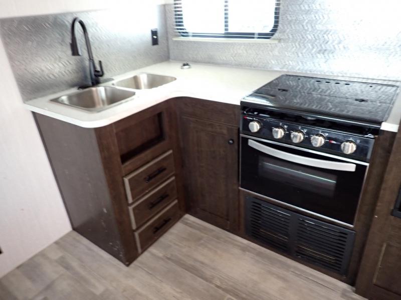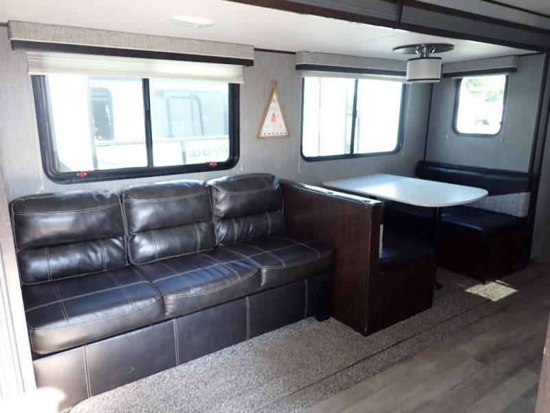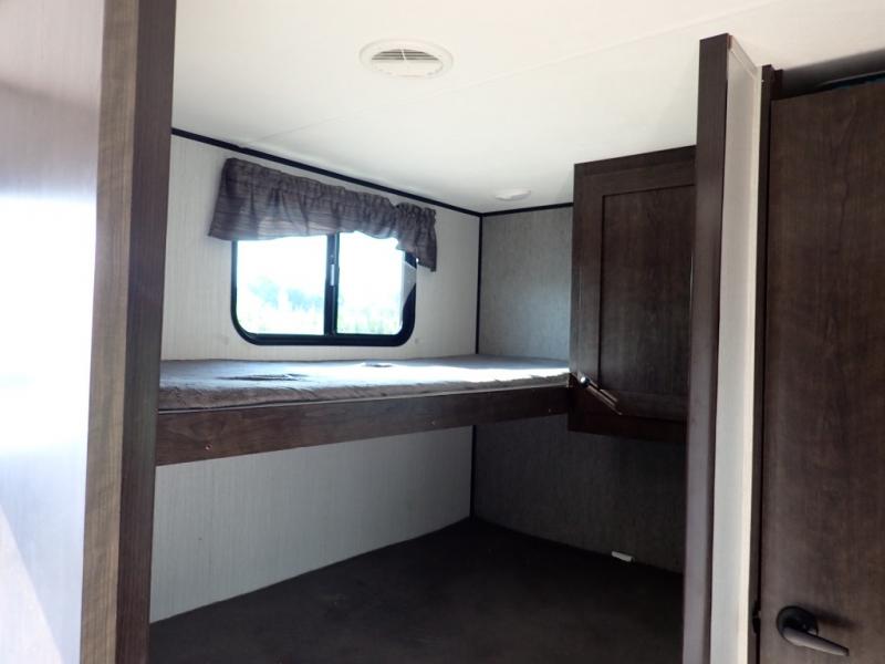 Load up the kids and invite the cousins for a fun weekend in this Prowler travel trailer that can sleep eight people each night. The bunkhouse suite includes a set of bunk beds and its own half bath for convenience. The chef of the family can prepare breakfast on the three-burner cooktop while the rest of your crew relaxes on the sofa or at the booth dinette. This model also includes an exterior camp kitchen so that you can enjoy dinner outside under the power awning with LED lights. When it's finally time to call it a night, freshen up in the full bath and then head to the front private bedroom to get a good night's rest.