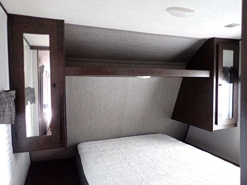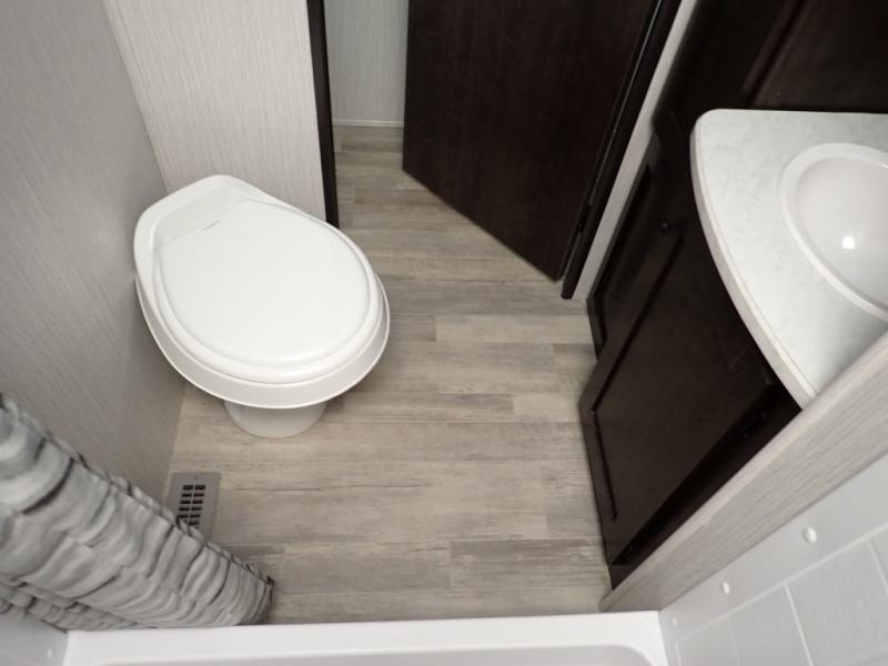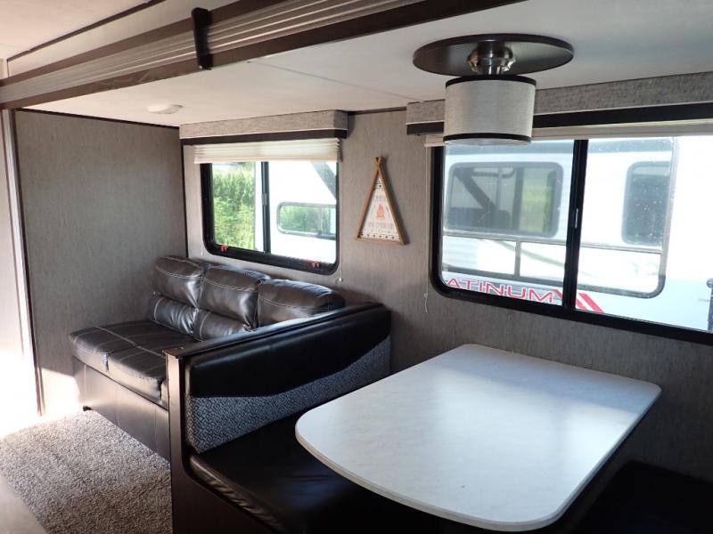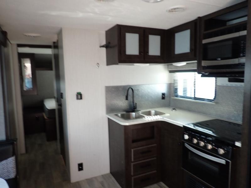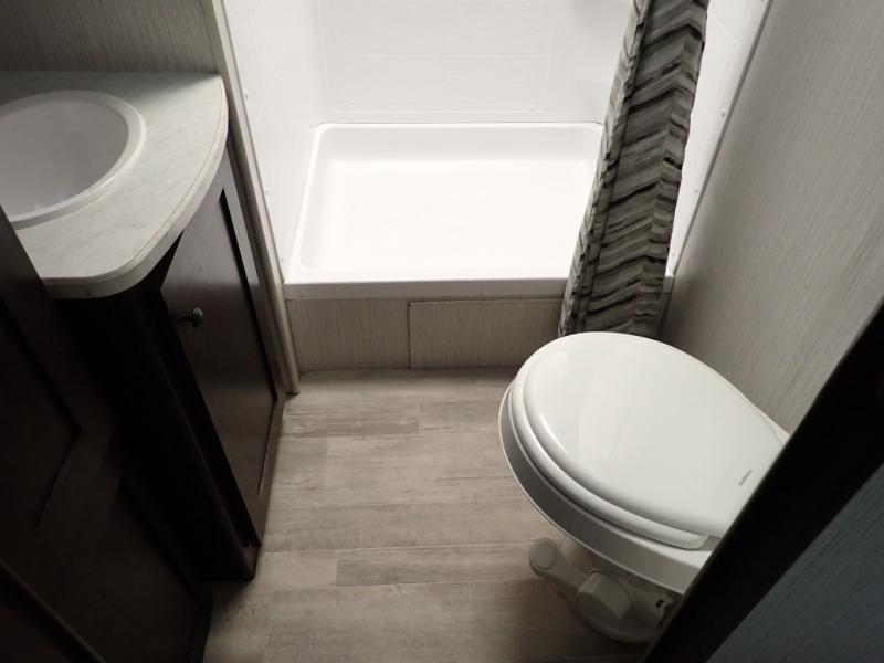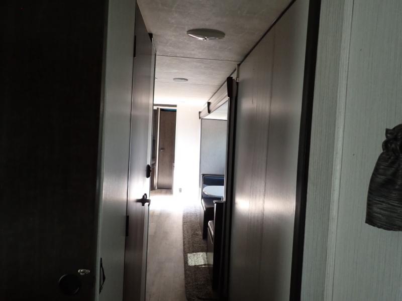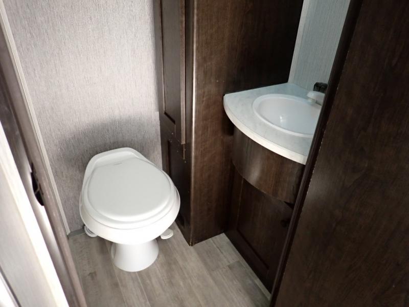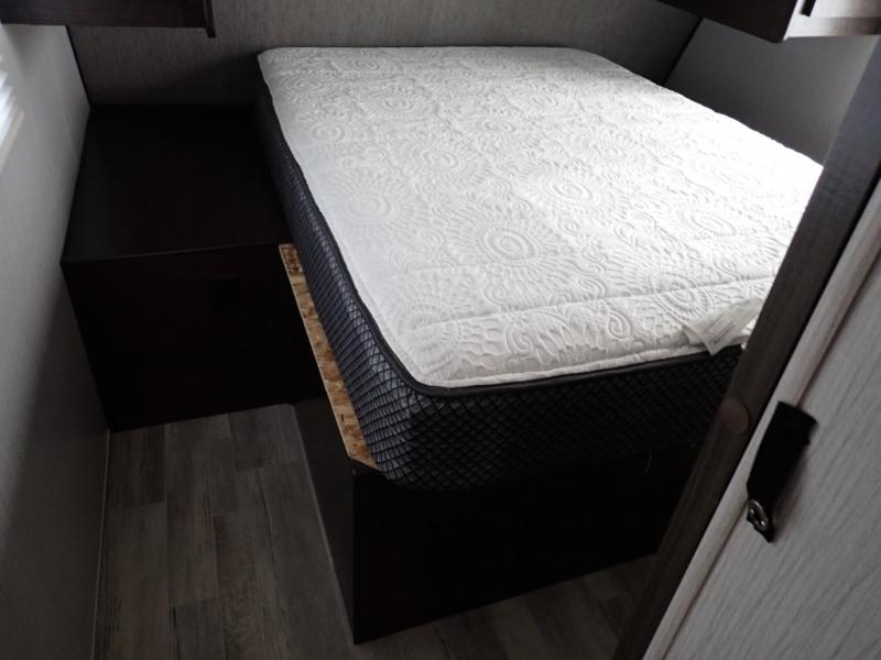 Load up the kids and invite the cousins for a fun weekend in this Prowler travel trailer that can sleep eight people each night. The bunkhouse suite includes a set of bunk beds and its own half bath for convenience. The chef of the family can prepare breakfast on the three-burner cooktop while the rest of your crew relaxes on the sofa or at the booth dinette. This model also includes an exterior camp kitchen so that you can enjoy dinner outside under the power awning with LED lights. When it's finally time to call it a night, freshen up in the full bath and then head to the front private bedroom to get a good night's rest.