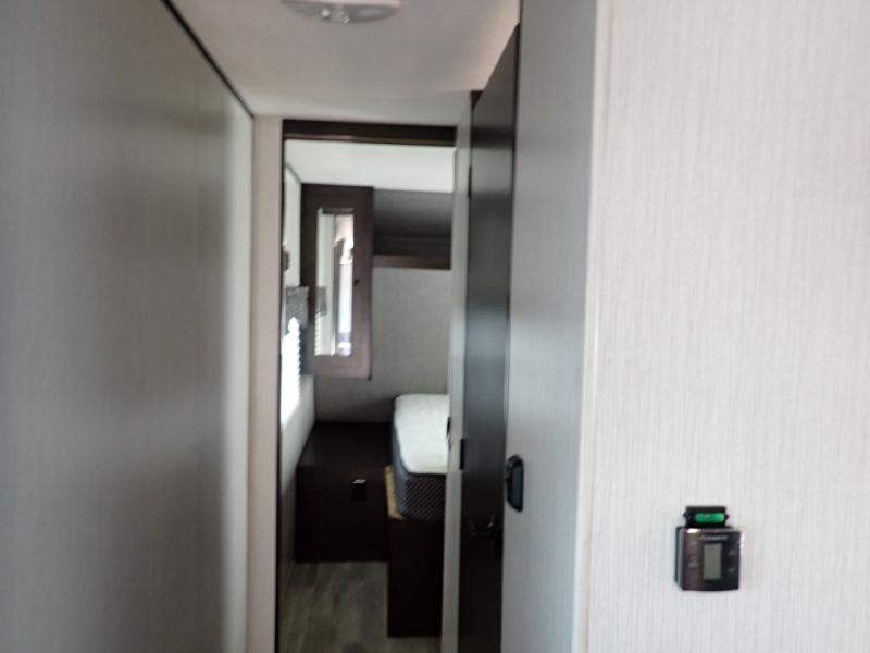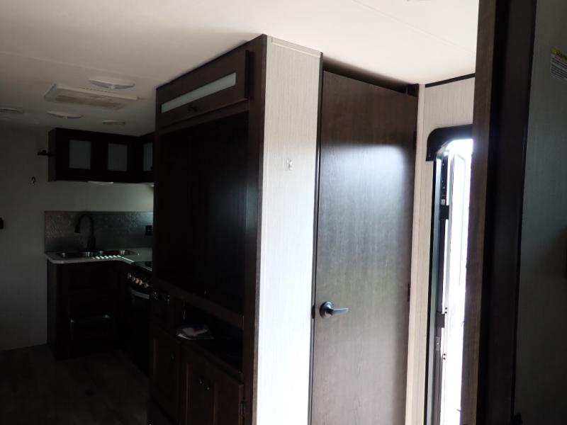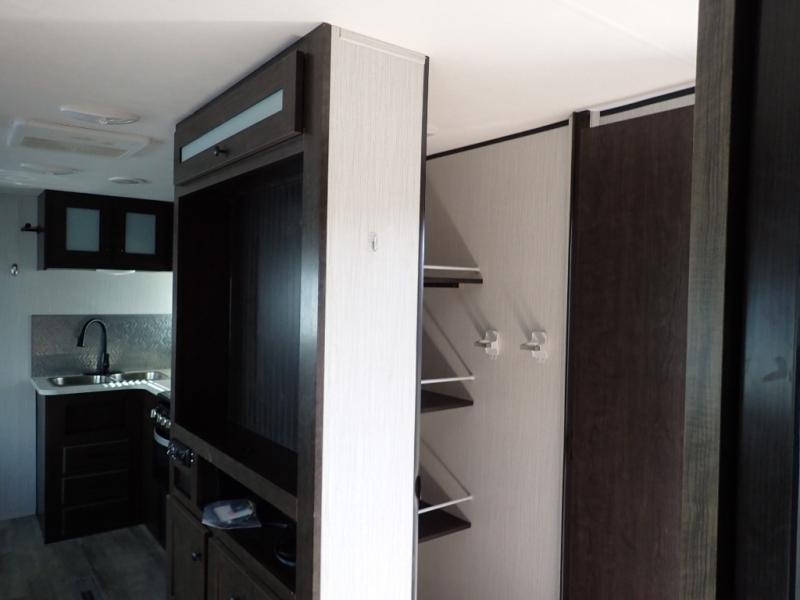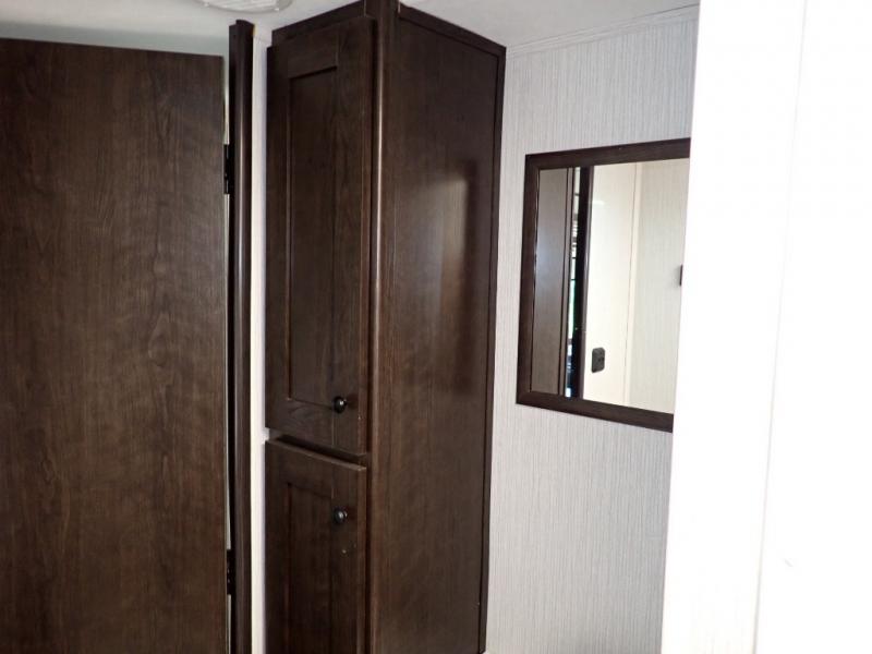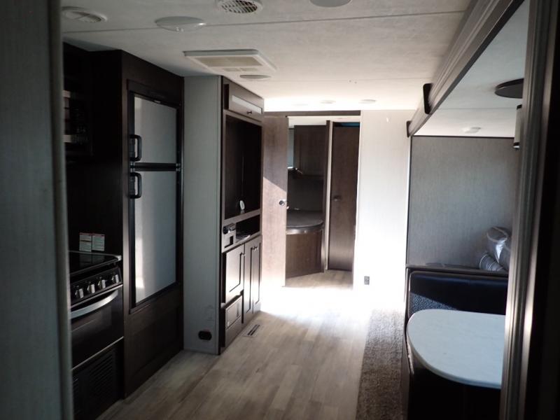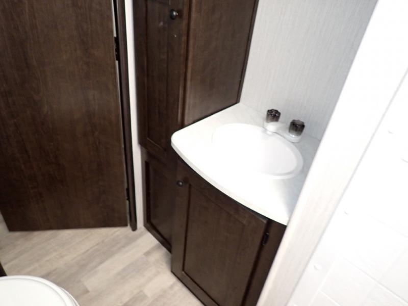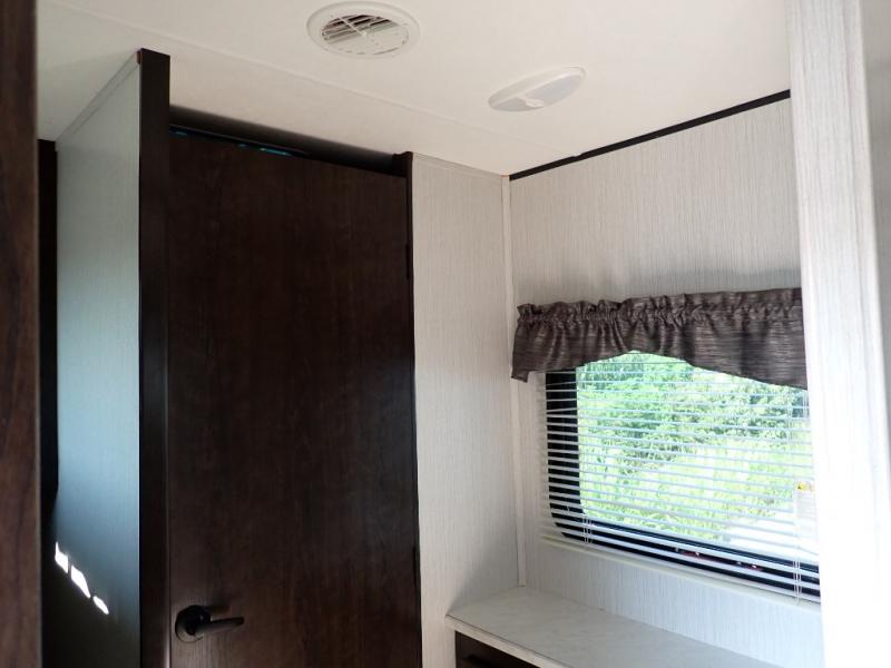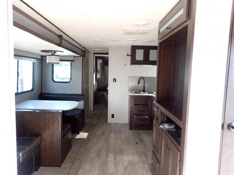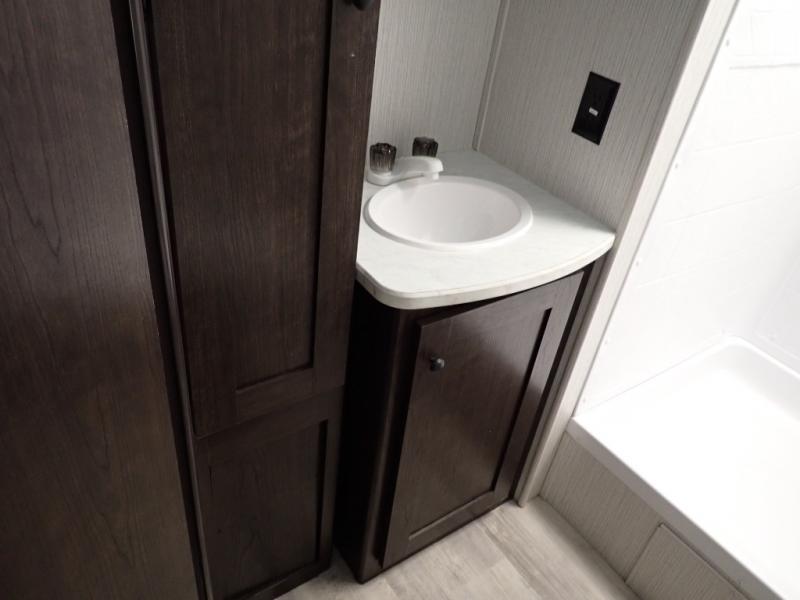 Load up the kids and invite the cousins for a fun weekend in this Prowler travel trailer that can sleep eight people each night. The bunkhouse suite includes a set of bunk beds and its own half bath for convenience. The chef of the family can prepare breakfast on the three-burner cooktop while the rest of your crew relaxes on the sofa or at the booth dinette. This model also includes an exterior camp kitchen so that you can enjoy dinner outside under the power awning with LED lights. When it's finally time to call it a night, freshen up in the full bath and then head to the front private bedroom to get a good night's rest.