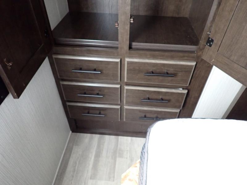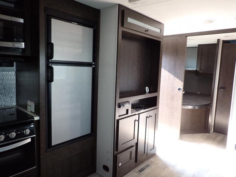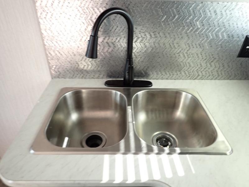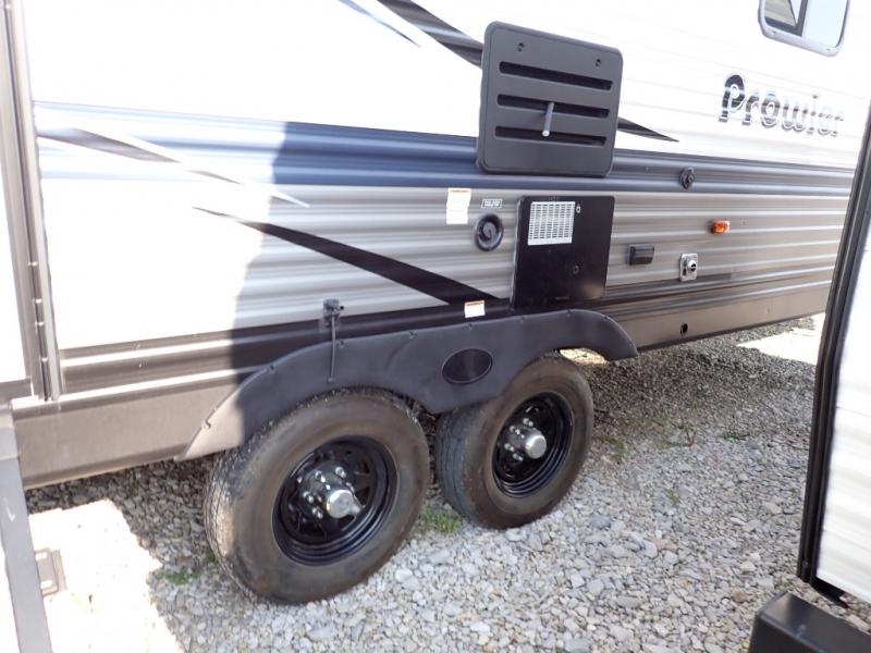 The Heartland Prowler travel trailers and toy haulers are constructed with aluminum exterior metal sides, a cambered structural steel I-beam frame, 5/8" Dyna Span floor decking, and a diamond plate stone guard to provide a strong, durable unit made to last. The blue exterior LED frame rail lights and speakers will turn heads at the campground, and with a finished pass-through storage, you can bring along all your camp gear. Each model includes all the kitchen amenities you may need while away from home, including a double-door refrigerator with a freezer, a microwave oven, ball-bearing drawer guides, and a stainless steel pull-out faucet to make clean-up a breeze. You'll appreciate the quick recovery gas/electric DSI water heater, the 13,500 BTU ducted A/C, and the in-floor ducted heat to keep you comfortable in any season.