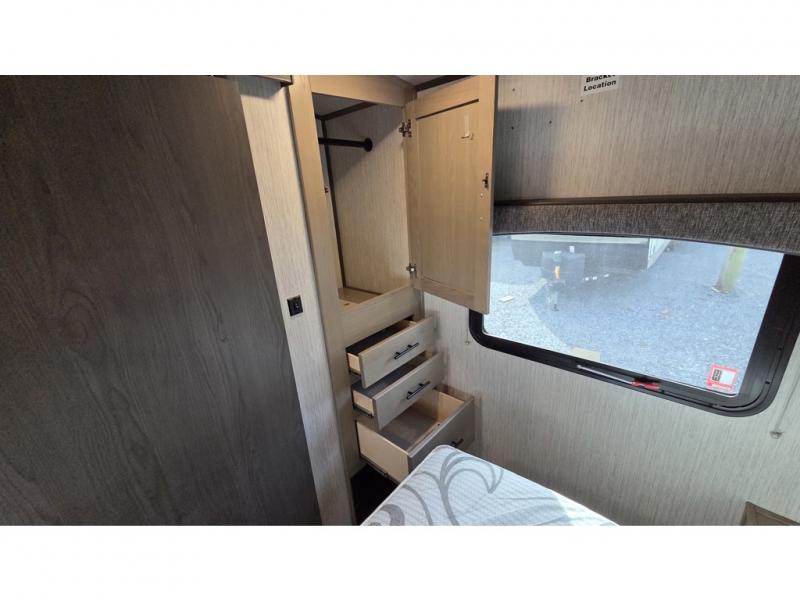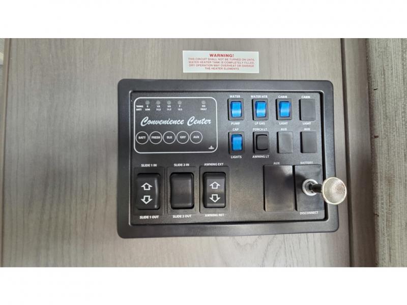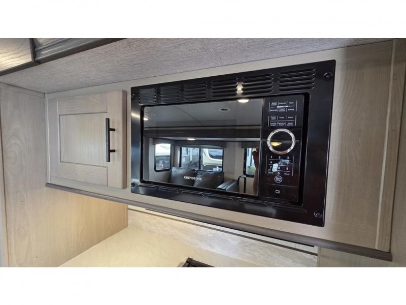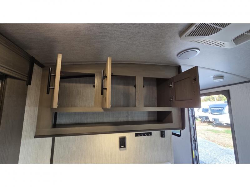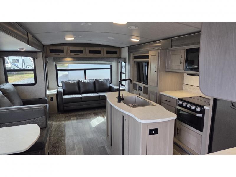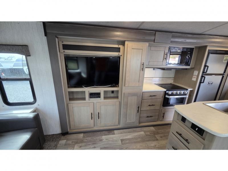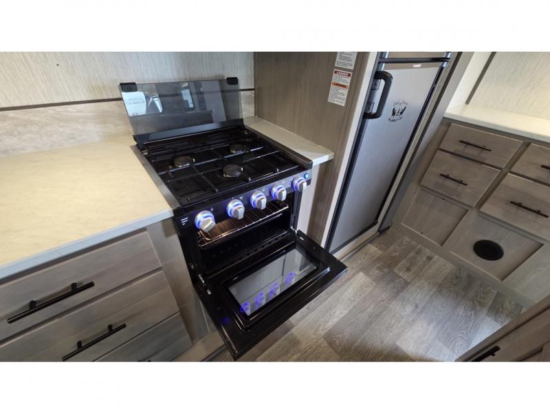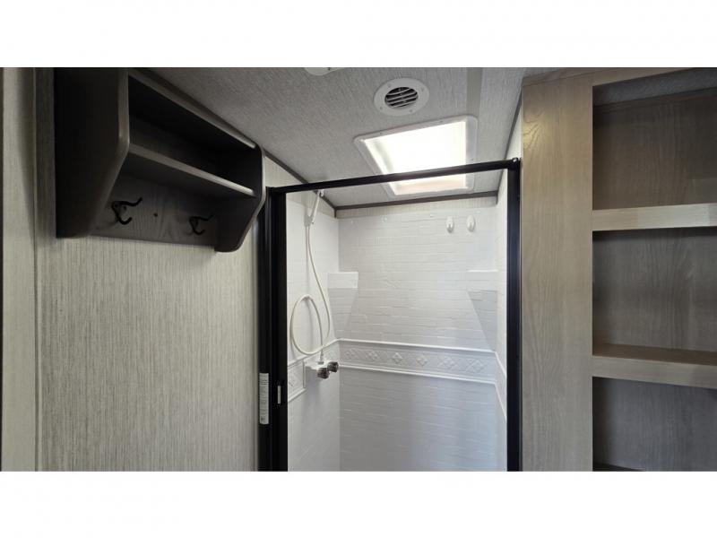 After an afternoon of hiking in the woods you can return to the comfort of your own accommodations such as a full bathroom, a bedroom, plus a kitchen and living area. There is plenty of room for meal prep on the kitchen island and on the extra counter space along the interior wall. The cook will love all the appliances also. The full bathroom is straight in from the entry door allowing quick access from outside. When it is time to turn in for the night then head to the front bedroom where you will find a queen bed and a space saving sliding door for privacy when you have overnight guests sleeping on the furniture. Step inside today!
