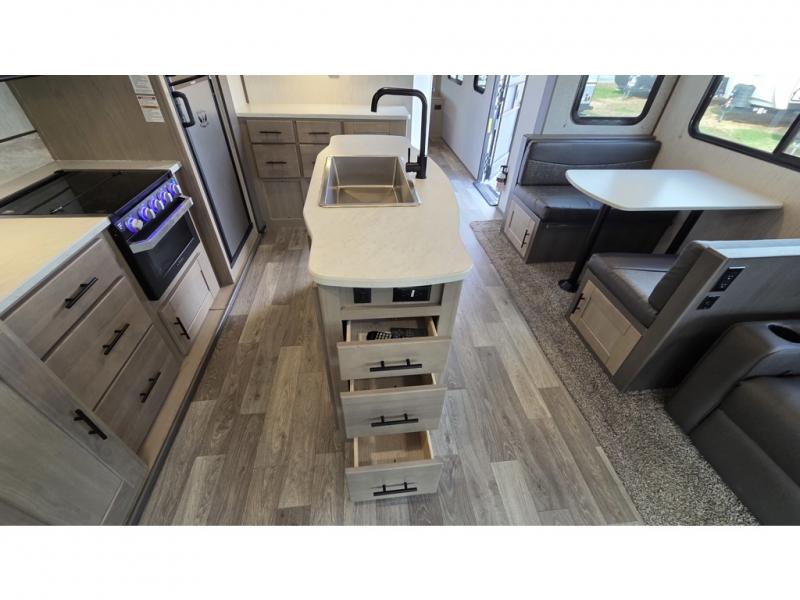 For a lightweight, smaller, and easier to manage travel trailer you will want a Heartland Sundance Ultra Lite. There are a variety of units to choose from and range from a single slide out ideal couples trailer to a double slide out bunkhouse travel trailer that is perfect for any size family. Along the exterior there is a painted fiberglass front cap, a heated, enclosed underbelly, a barrel roof design with aluminum trusses, and an outside shower where you can easily clean up before heading indoors. You will be impressed with the inside of each model. There are stainless steel appliances, residential hidden cabinet hinges, and LED accent back-lighting throughout. For a relaxing time away from home, choose to spend it with a Sundance Ultra Lite travel trailer!