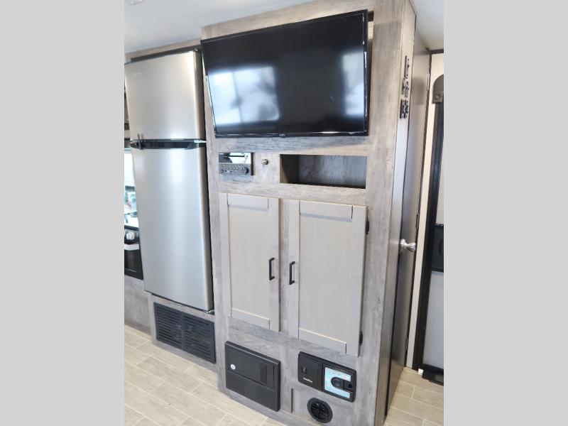 Your family of nine will enjoy all of the space provided by the large slide out, and all the features throughout including a set of queen bunk beds for the kids, and the two kitchens; one inside and one outside. Another convenient feature is the U-shaped dinette where you can enjoy your meals and play cards at, or transform the furniture into extra sleeping space. You will find more living space outdoors under the 15' awning, and there is much more to enjoy each time you head out for a fun adventure!