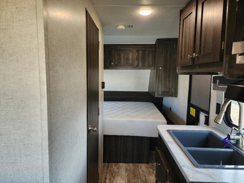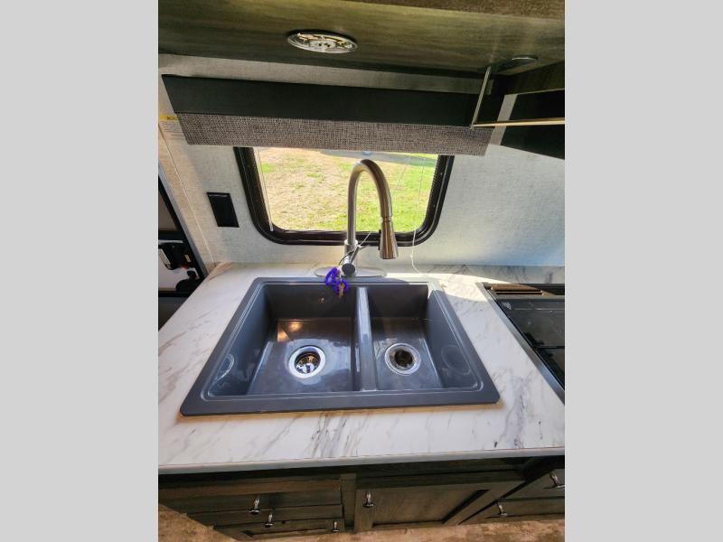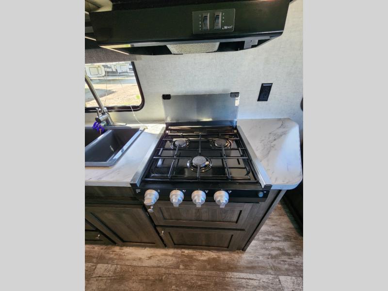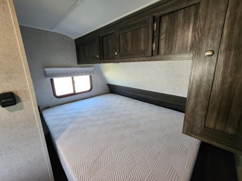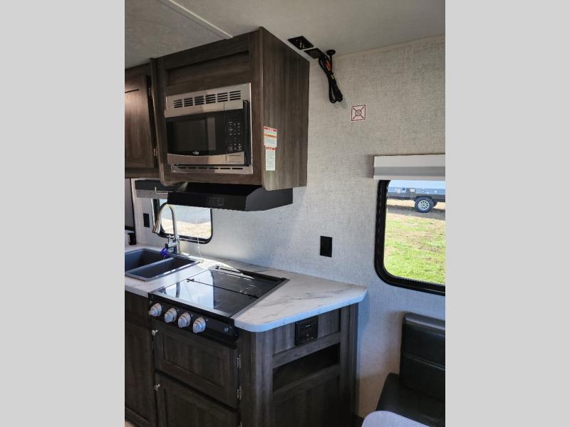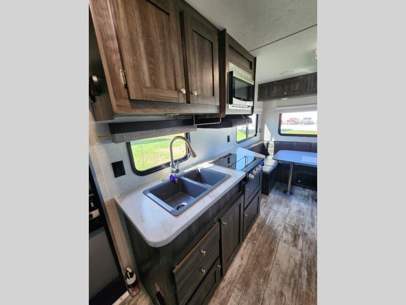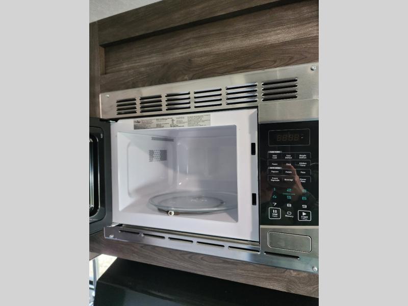 Easy to tow and easy to setup sounds like the perfect RV for quick trips and far-away destinations. Just imagine hiking the trails and relaxing under the power awning during the daytime or even at night thanks to the LED lights on the awning. When it is time to retire for the evening you can sleep on your own queen bed while the kids sleep on the folded down U-shaped dinette. In the morning be sure to get cleaned up in the full bathroom before making breakfast on the stove or in the microwave. This unit is lightweight and easy to tow as well. You can stop imagining and start planning your next trip!
