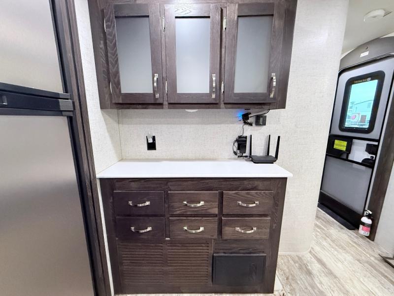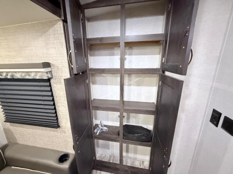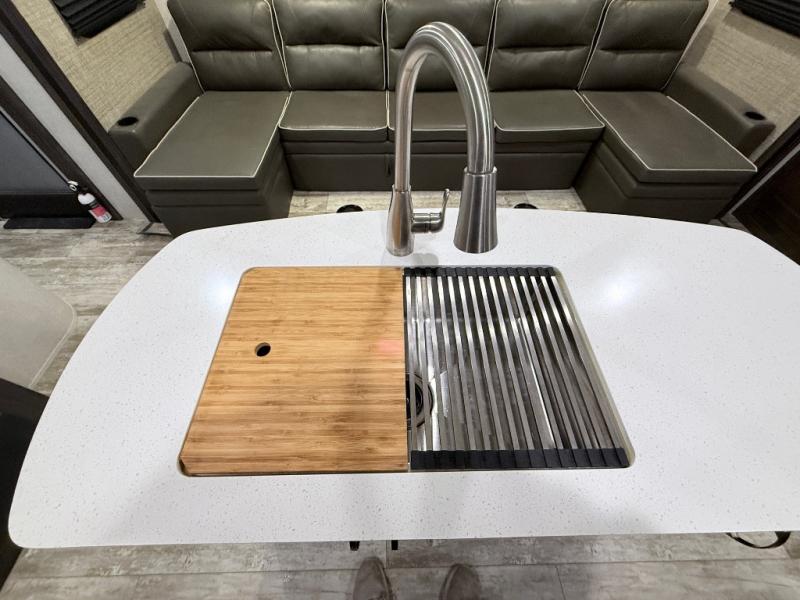 With any Open Range Light travel trailer or fifth wheel by Highland Ridge you will appreciate the RidgeLINK Bluetooth System that allows you to control your units functions, like the slides, awnings, and lighting from an app on your smartphone. The outside docking station houses your blank flush tank, hot/cold sprayer, and cable/satellite hook-ups and the Thermal Package features a heated and enclosed underbelly to extend your camping season. There is plenty of storage for all of your valuables, including overhead storage, storage doors in the dinette base, a large pot and pan drawer below the oven, and an exterior motion-lit pass-through storage for all of your large camp gear. These travel trailers and fifth wheels also feature a crowned ceiling for more space, hardwood cabinet doors and LED lighting for a more at-home feel, a power awning with LED lights and integrated speakers, plus a 15K A/C with quiet residential air return to keep you cool and comfortable!