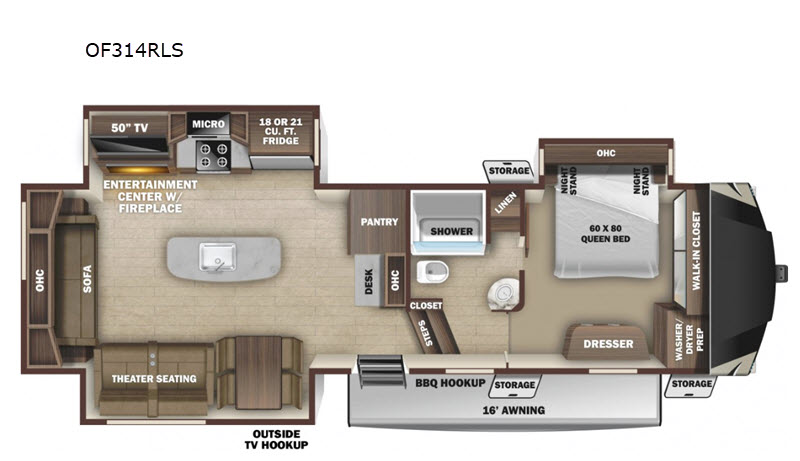 In StockHighland Ridge Open Range fifth wheel OF314RLS highlights: