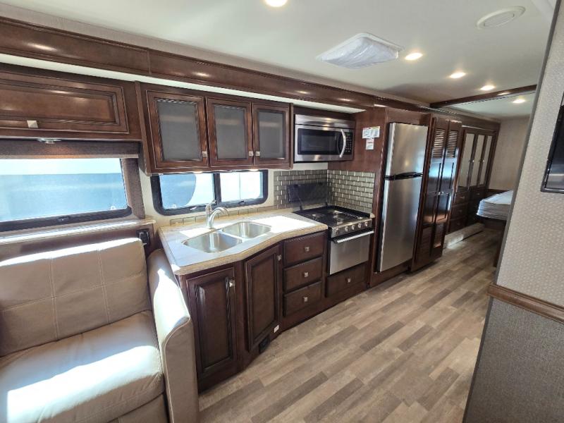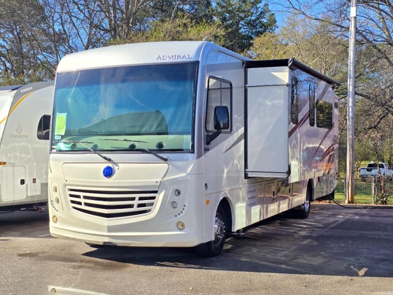 The Admiral Class A gas motorhome by Holiday Rambler allows your family to travel in comfort and luxury all while providing all the amenities you need while away from home. Each model includes lino flooring, 3" LED flush mount ceiling and under-cabinet reading lights, backsplash in the kitchen, and a king bed in the bedroom just to name a few interior features. Your family can relax under the electric awning with LED lights and each unit includes an exterior entertainment center with a 50" LED TV to keep the party going. These motorhomes also feature a Multiplex wiring control system with a 4.3" touchscreen panel and app control, a Boss radio with AM/FM/Bluetooth and backup camera screen, and multiple USB ports so you can keep you tablet and phone charged up and ready to go.