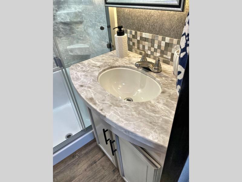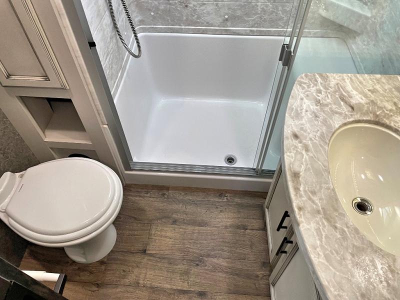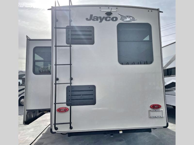 These famous Jayco Eagle fifth wheels and travel trailers come with a long and rich history of quality construction, modern styling, and innovative design! The 4-Star Handling Package comes standard on every model, and it includes reliable features, like 16" Goodyear Endurance tires, Dexter axles with Nev-R-Adjust brakes, E-Z Lube hubs, and MORryde CRE-3000 rubberized suspension. The MORryde StepAbove entrance steps with blue LED lights will provide a solid entry system so that you don't worry about falling over as you bring your luggage inside, and you will also rest assured knowing that the entire unit has been crafted with a StrongholdVBL aluminum-framed, vacuum-bonded gel-coated fiberglass, a Magnum Truss roof system, and a Climate Shield zero-degree tested weather protection.