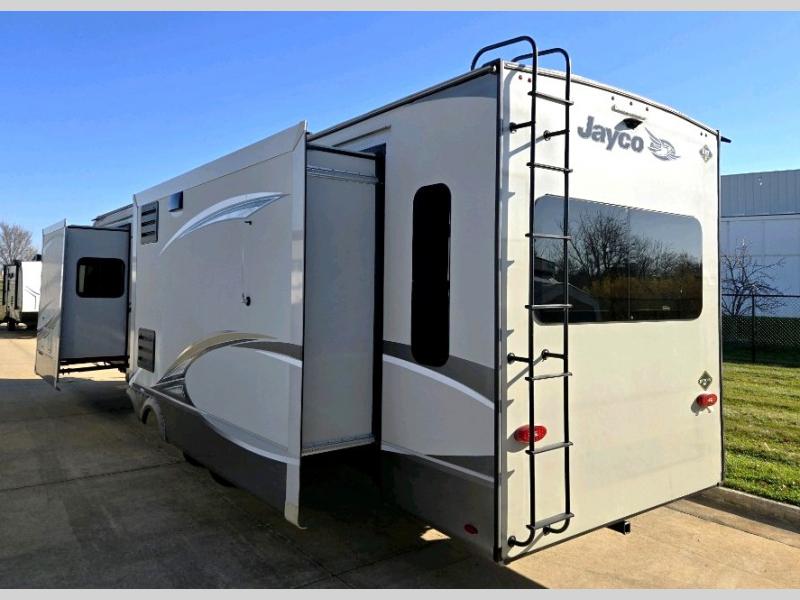 These famous Jayco Eagle fifth wheels and travel trailers come with a long and rich history of quality construction, modern styling, and innovative design! The 4-Star Handling Package comes standard on every model, and it includes reliable features, like 16" Goodyear Endurance tires, Dexter axles with Nev-R-Adjust brakes, E-Z Lube hubs, and MORryde CRE-3000 rubberized suspension. The MORryde StepAbove entrance steps with blue LED lights will provide a solid entry system so that you don't worry about falling over as you bring your luggage inside, and you will also rest assured knowing that the entire unit has been crafted with a StrongholdVBL aluminum-framed, vacuum-bonded gel-coated fiberglass, a Magnum Truss roof system, and a Climate Shield zero-degree tested weather protection.