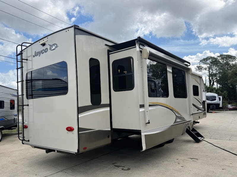 These famous Jayco Eagle fifth wheels and travel trailers come with a long and rich history of quality construction, modern styling, and innovative design! The 4-Star Handling Package comes standard on every model, and it includes reliable features, like 16" Goodyear Endurance tires, Dexter axles with Nev-R-Adjust brakes, E-Z Lube hubs, and MORryde CRE-3000 rubberized suspension. The MORryde StepAbove entrance steps with blue LED lights will provide a solid entry system so that you don't worry about falling over as you bring your luggage inside, and you will also rest assured knowing that the entire unit has been crafted with a StrongholdVBL aluminum-framed, vacuum-bonded gel-coated fiberglass, a Magnum Truss roof system, and a Climate Shield zero-degree tested weather protection.