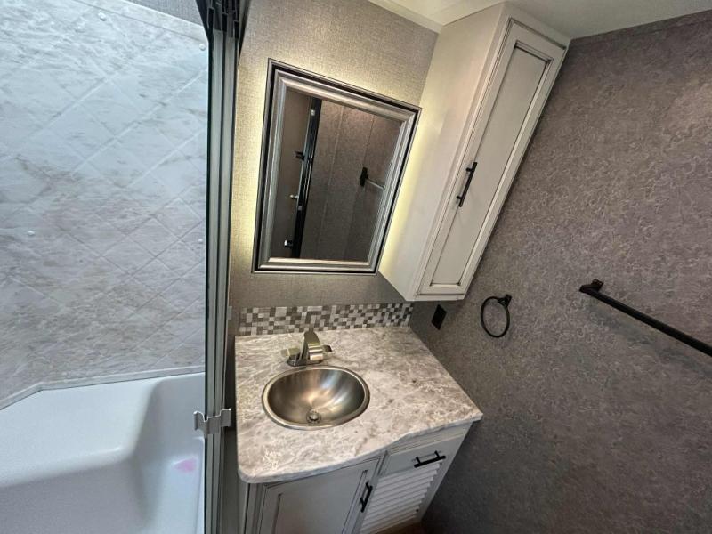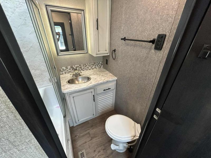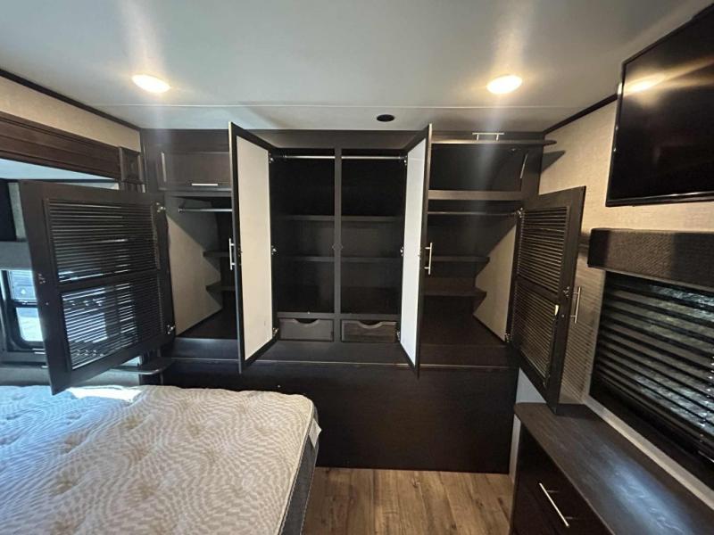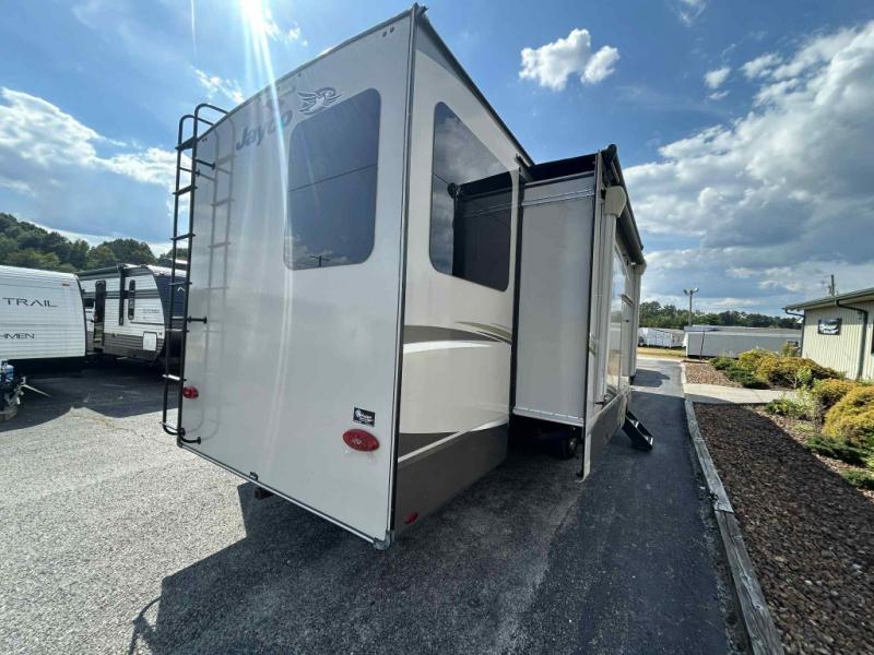 These famous Jayco Eagle fifth wheels and travel trailers come with a long and rich history of quality construction, modern styling, and innovative design! The 4-Star Handling Package comes standard on every model, and it includes reliable features, like 16" Goodyear Endurance tires, Dexter axles with Nev-R-Adjust brakes, E-Z Lube hubs, and MORryde CRE-3000 rubberized suspension. The MORryde StepAbove entrance steps with blue LED lights will provide a solid entry system so that you don't worry about falling over as you bring your luggage inside, and you will also rest assured knowing that the entire unit has been crafted with a StrongholdVBL aluminum-framed, vacuum-bonded gel-coated fiberglass, a Magnum Truss roof system, and a Climate Shield zero-degree tested weather protection.