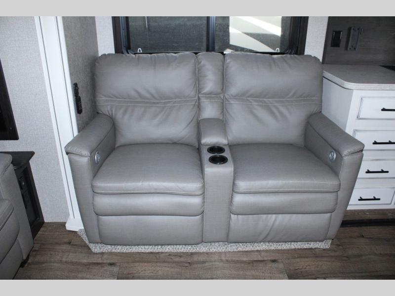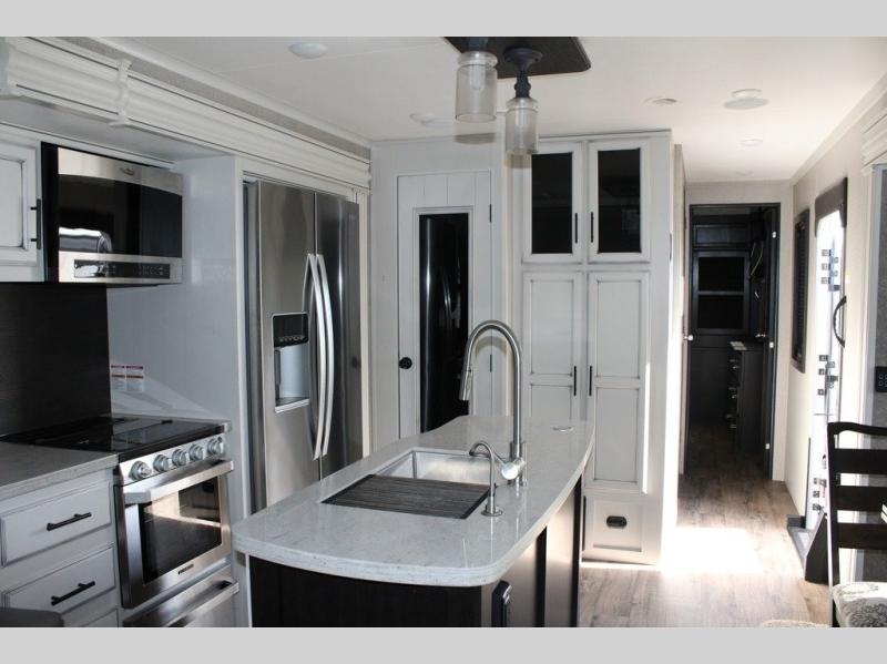 It won't be hard to convince your friends or family to join you on an adventure with this Eagle travel trailer! The luxurious modern conveniences, like the 50" LED HDTV, the LED fireplace, and the JAYCOMMAND "Smart RV" system, will have you thrilled to make your way to the campsite so that you can get started using them. The private bedroom up front will be just the spot for relaxing at night, and the queen bed slide will provide extra floor space.